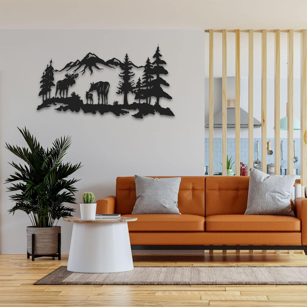 The wall art decor is designed with mountains, trees, and deer patterns, which are realistic and eye-catching, full of a peaceful feeling, and can match different decoration styles.