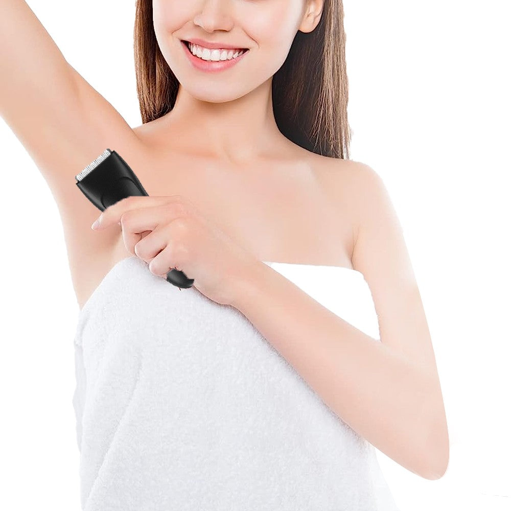 The electric bikini trimmer helps you shave your hair from your armpits, legs, bikini, and arms, keeping you clean, neat, and attractive.
