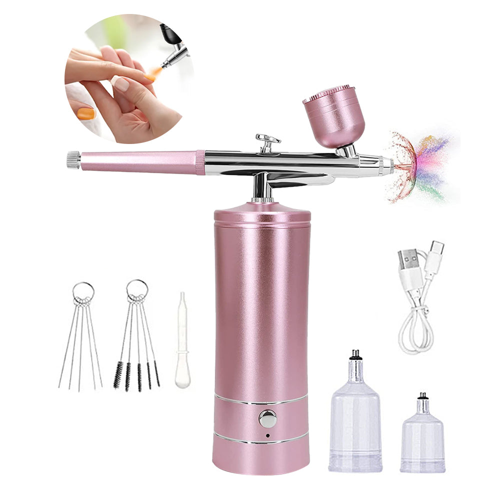 Rechargeable Cordless Airbrush Kit With Compressor for Nail Art Makeup Painting Art Cake Pink