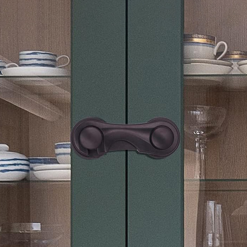 This babyproof cabinet lock is designed to protect children from contact with dangerous items stored in the cabinet.