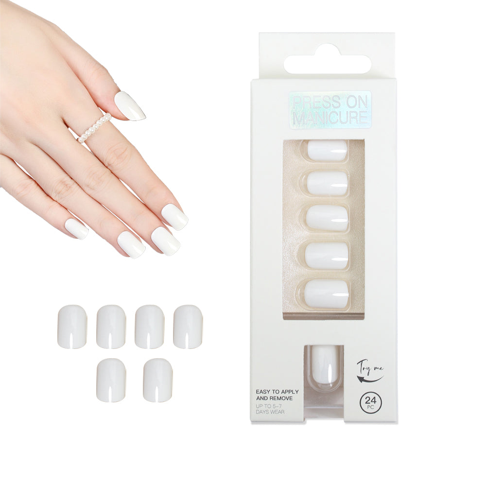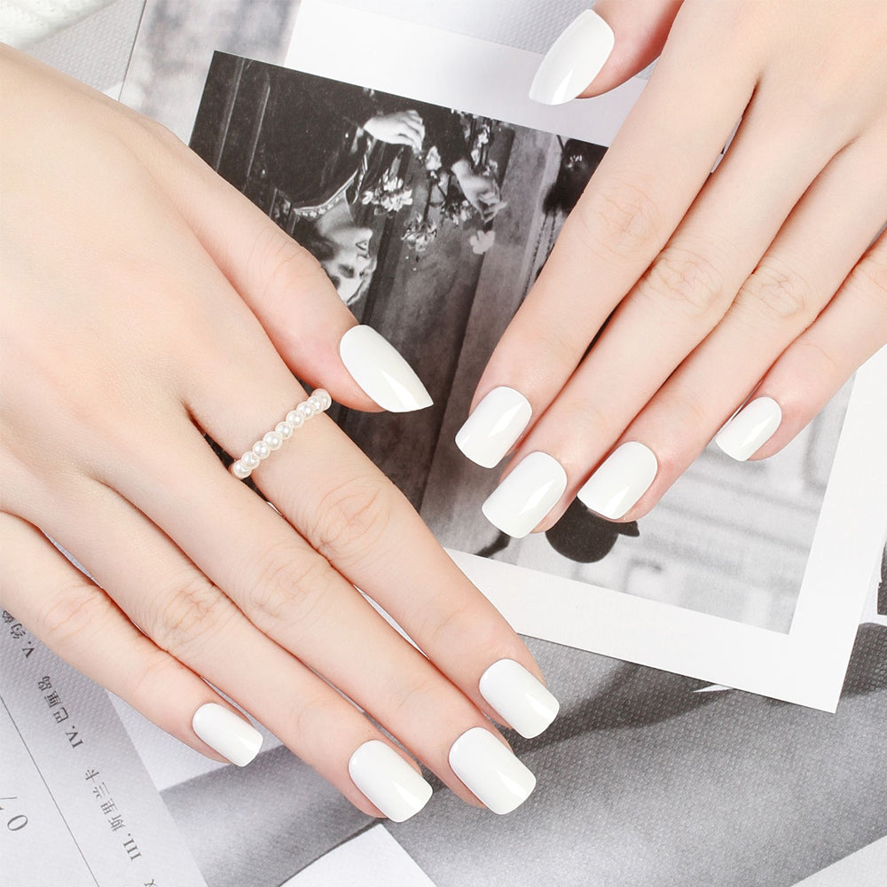 Set of 24Pcs Press On Nails Solid Color Self-Adhesive Fake Nails White