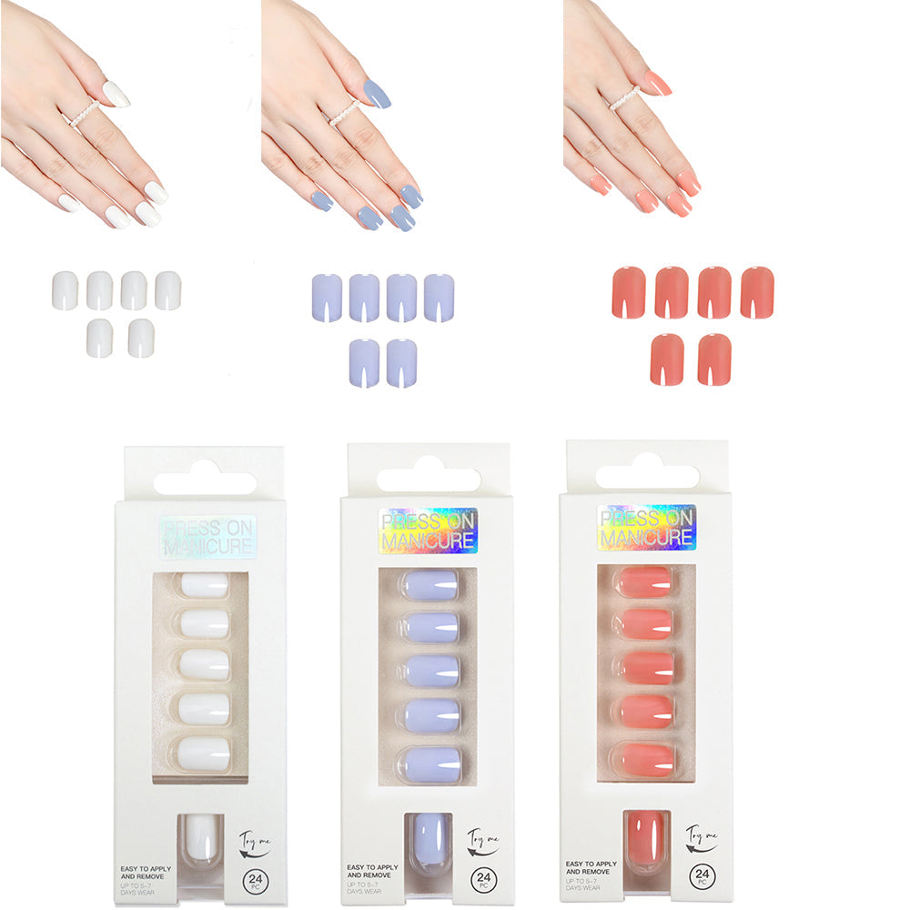 Set of 72Pcs Press On Nails Solid Color Self-Adhesive Fake Nails Style 2