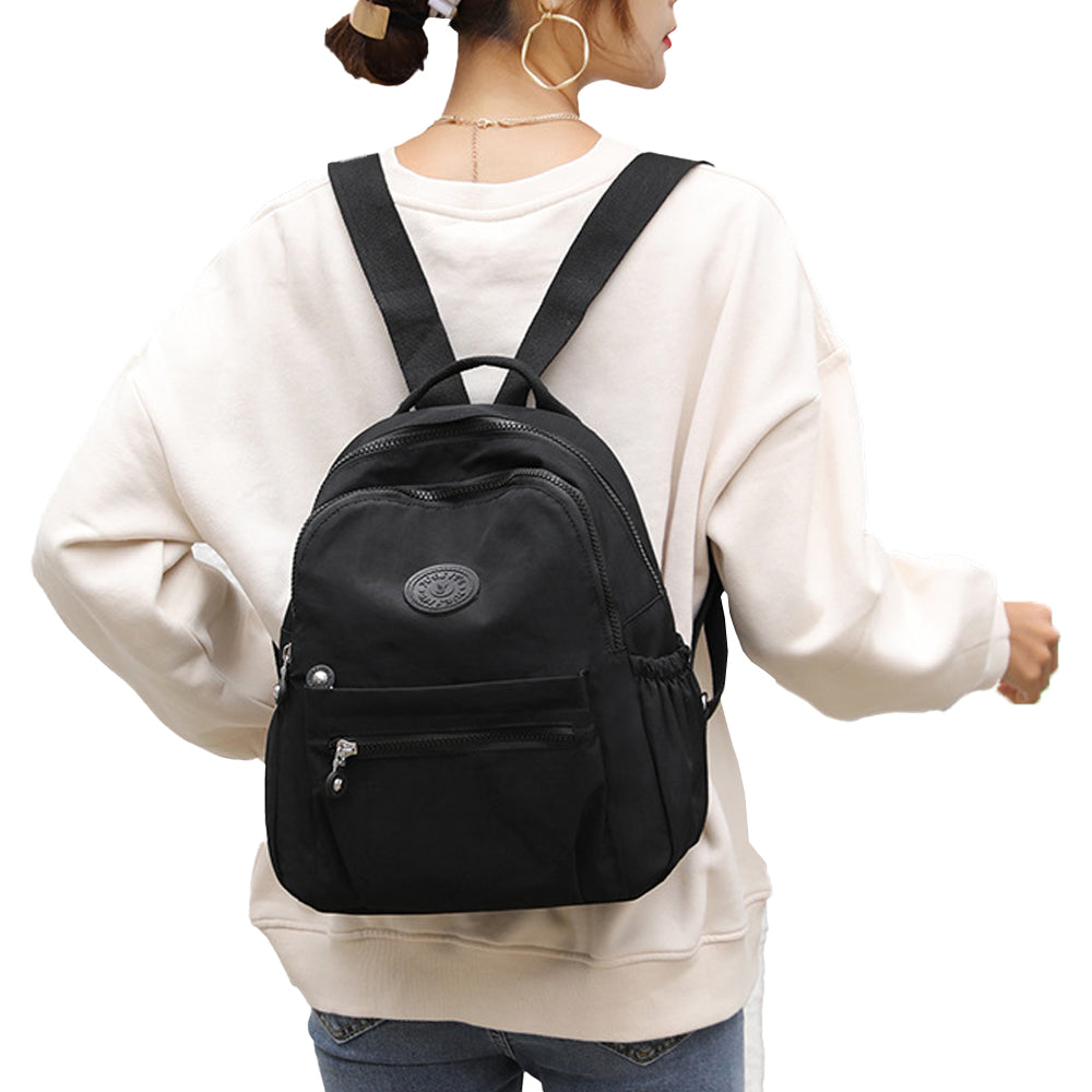Small Nylon Ladies Travel Backpacks Women Shopping Backpack Black