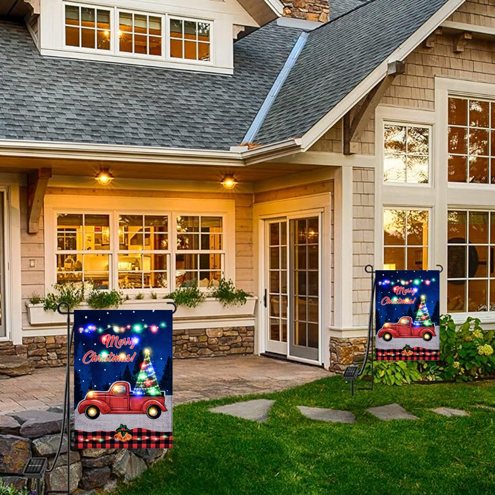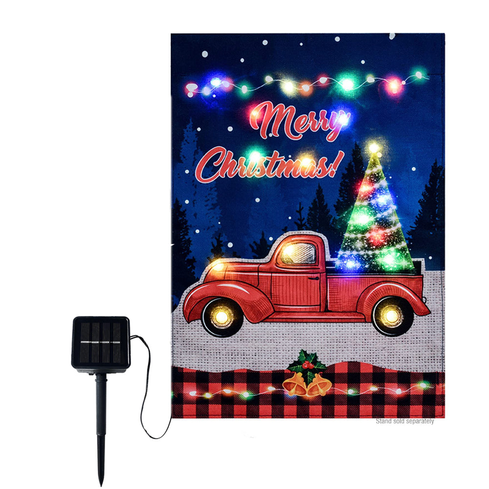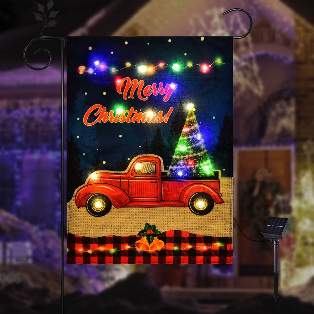 - The winter garden flag with solar lights features a 2-layer design, double-sided with pattern image viewable from both sides!