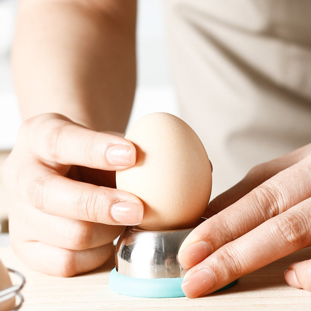 - Easy to use. Place the egg puncher on the table, place a raw egg with bigger head down and push it down on the stainless steel pin gently. Once hearing a "click", the poke is done.
