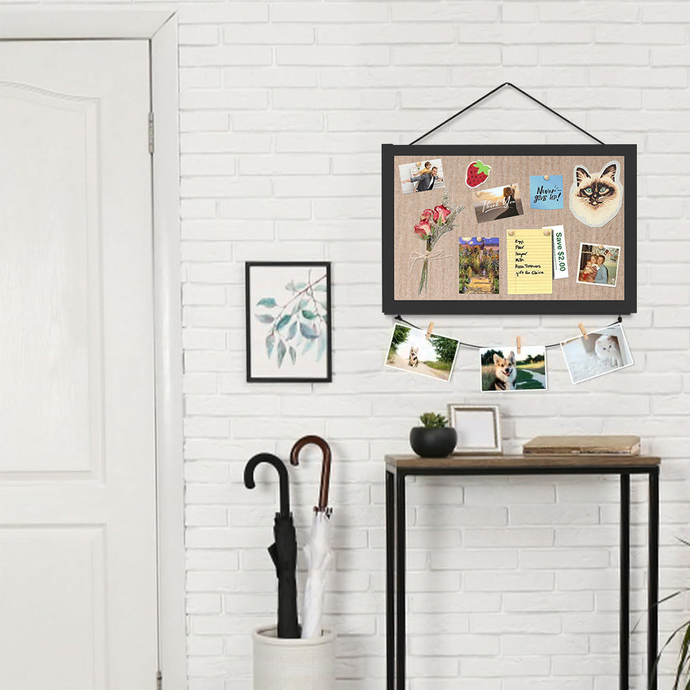 - You can use pushpins and thumbtacks to fix all your notes, messages, pictures, memos, calendars, menus, reminders, etc., or this wooden cork board can be used as a display board for your DIY crafts.