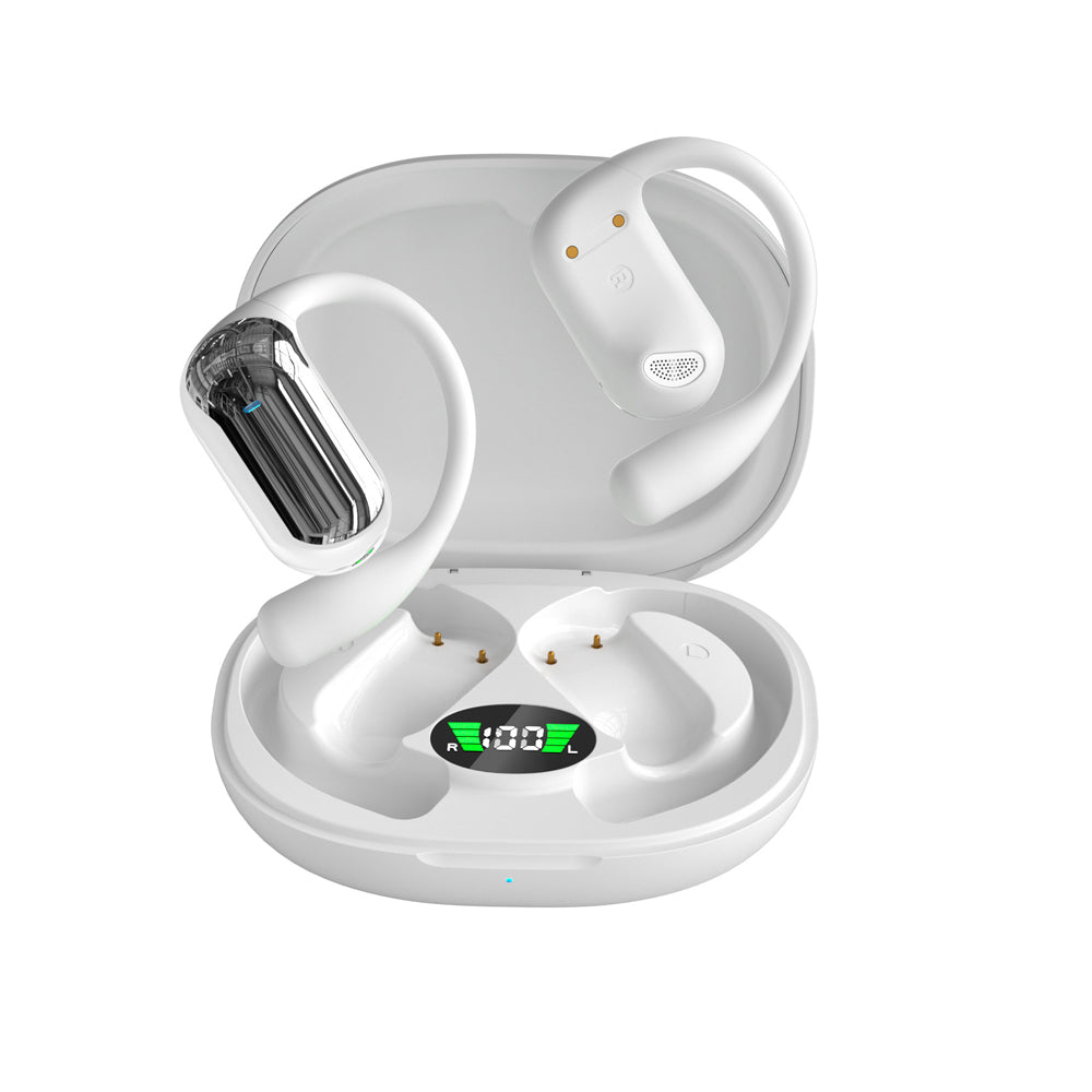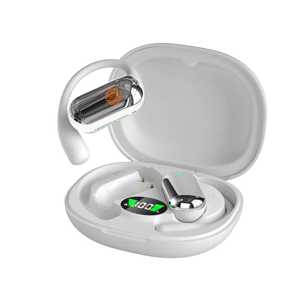 Wireless Bluetooth 5.4 Earbuds Touch Control Earhook Earphones Sports Earbuds with Digital Display Case White
