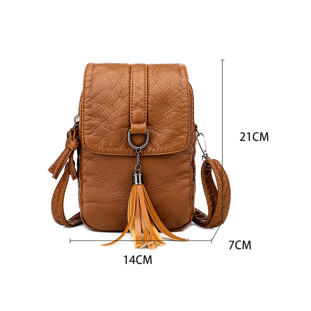 Women Mobile Phone Bag PU Leather Purse Wallet Shoulder Pouch Small Crossbody Bag Brown