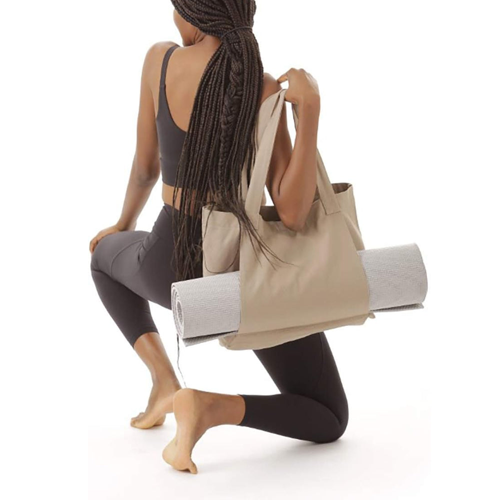 This canvas bag that can hold a yoga mat on the outside is a must-have for yoga enthusiasts.