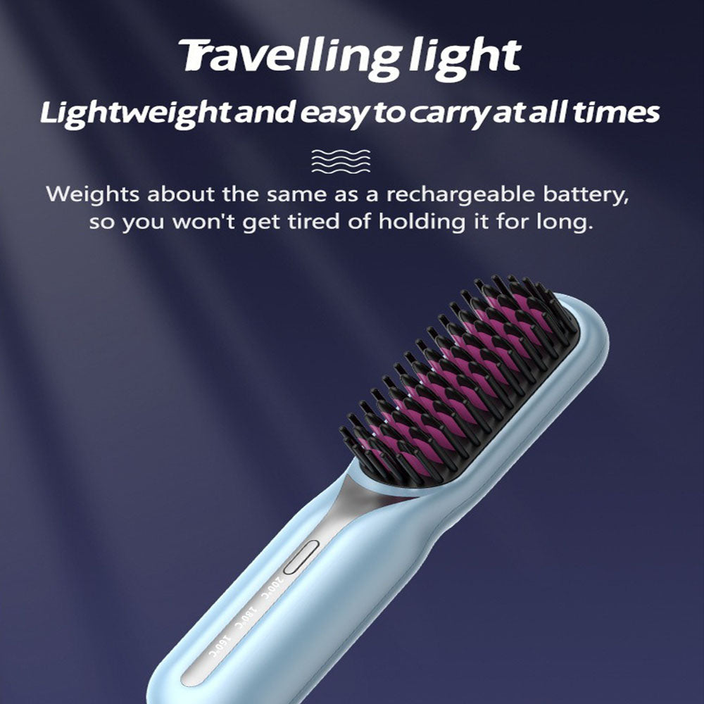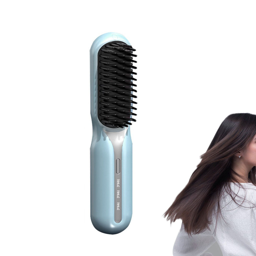 Cordles Hair Straightener Portable Hair Brush AntiScald Hair Styling Tool Blue