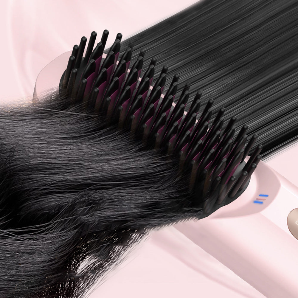 This is a 2 in 1 hair styling tool that combines a hair straightener comb and a flat hair iron, whether you're traveling, at work, or out for the evening, it's always ready to tackle any urgent hair fixing needs with ease.