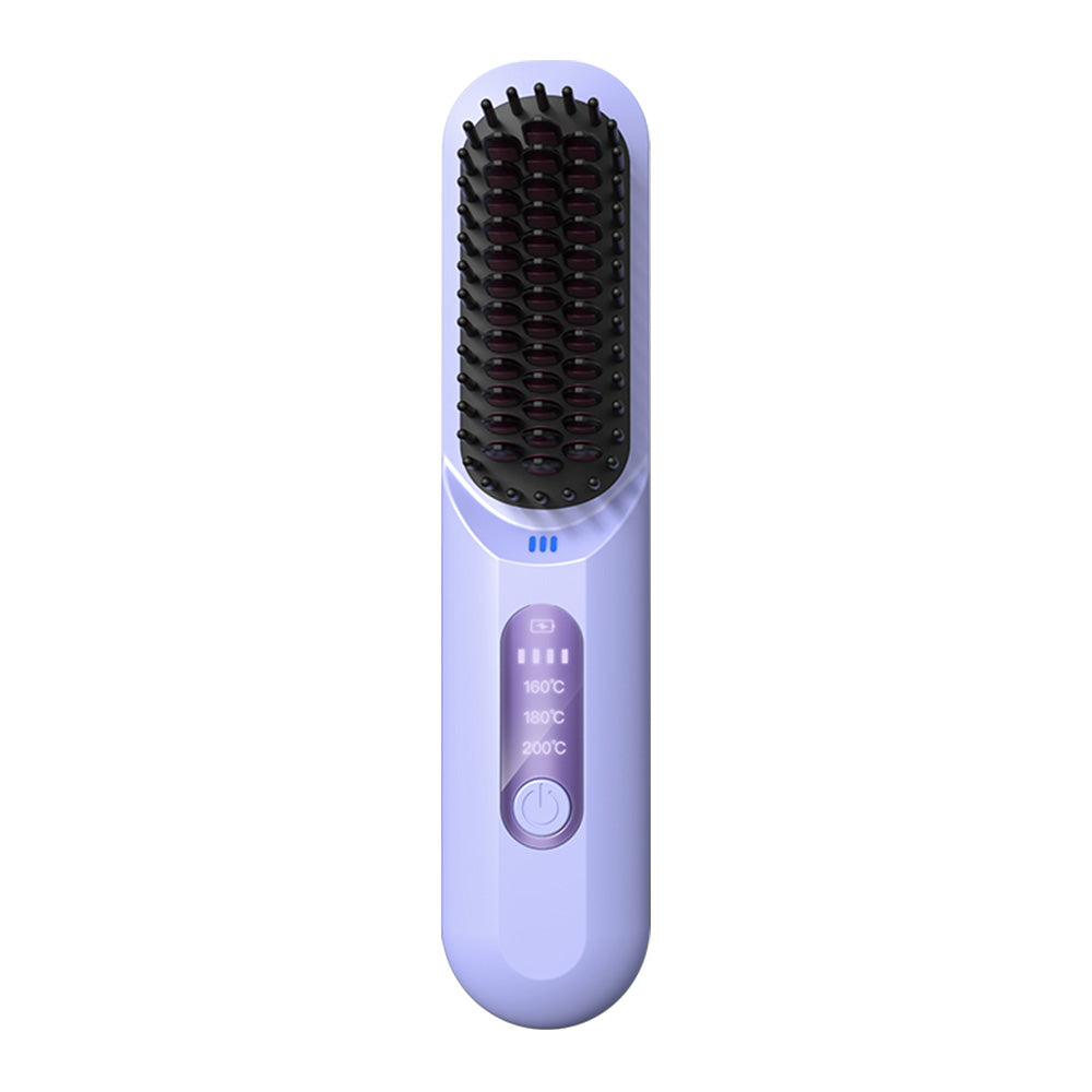 Cordless Hair Straightener Brush Mini Anion Hot Straightener Comb with LED Display Purple