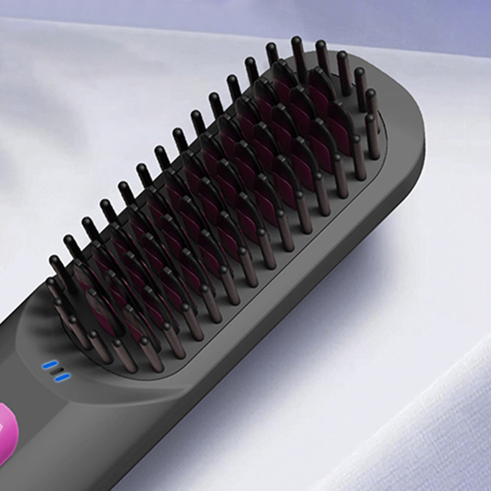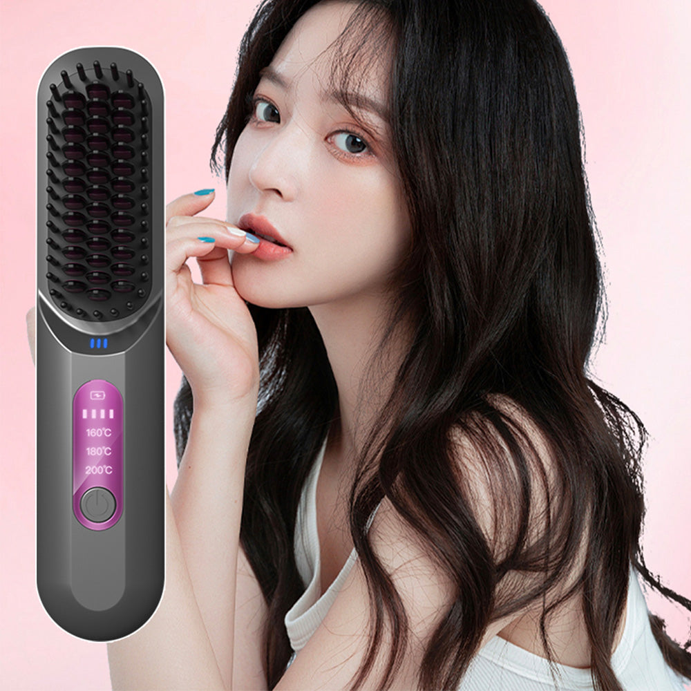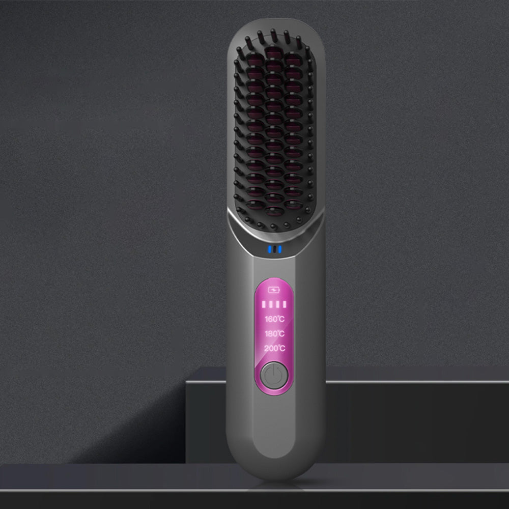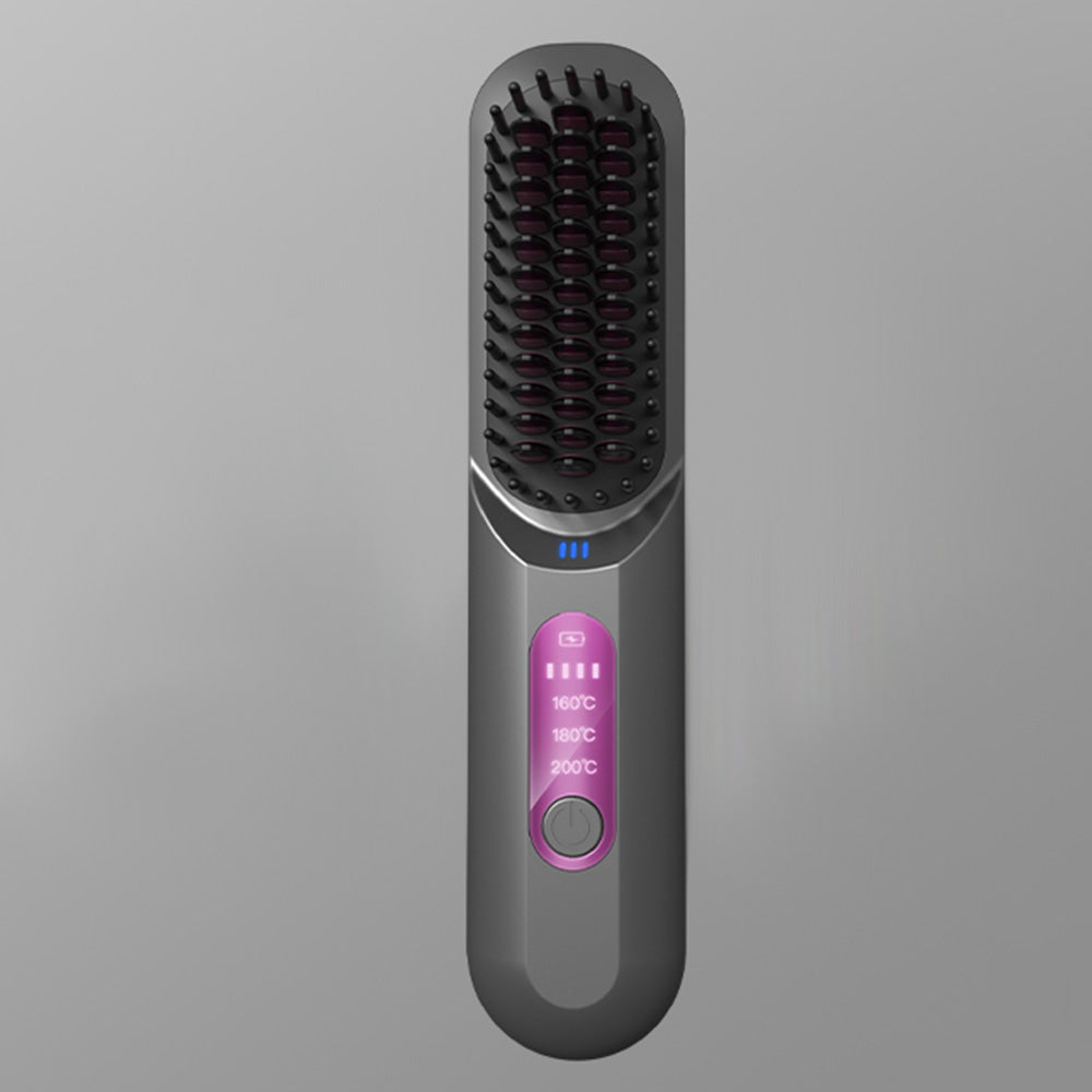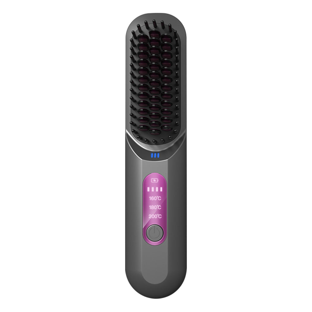 Cordless Hair Straightener Brush Mini Anion Hot Straightener Comb with LED Display Grey