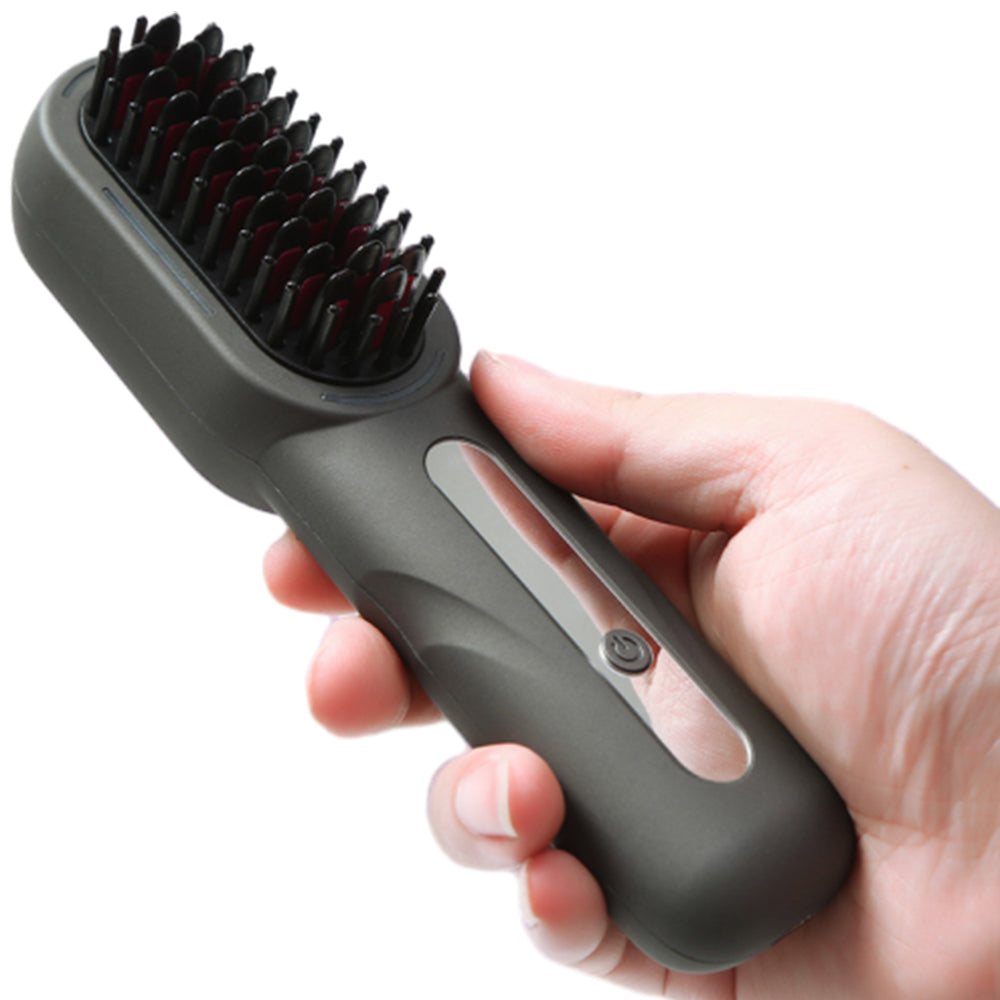 Cordless Hair Straightener Brush Portable Heated Straightening Comb Gray