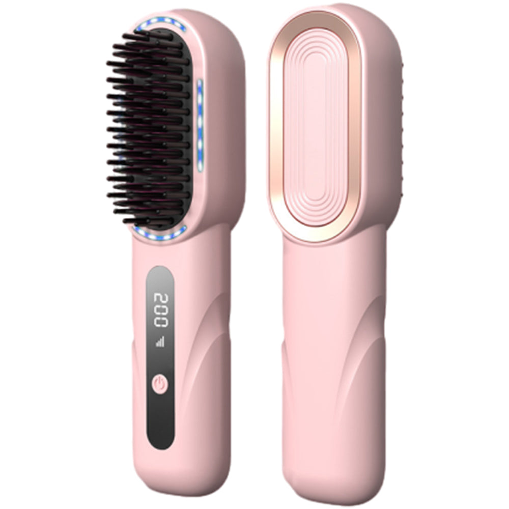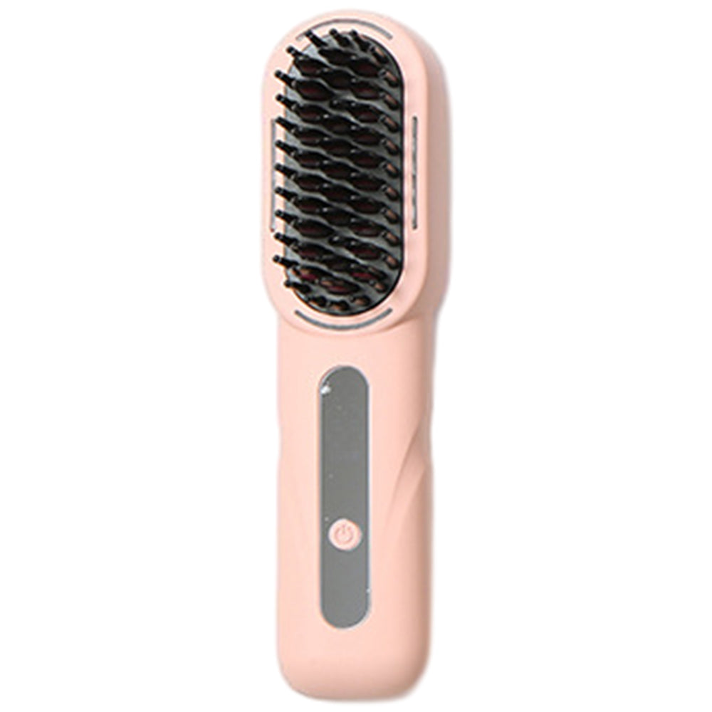 Cordless Hair Straightener Brush Portable Heated Straightening Comb Pink