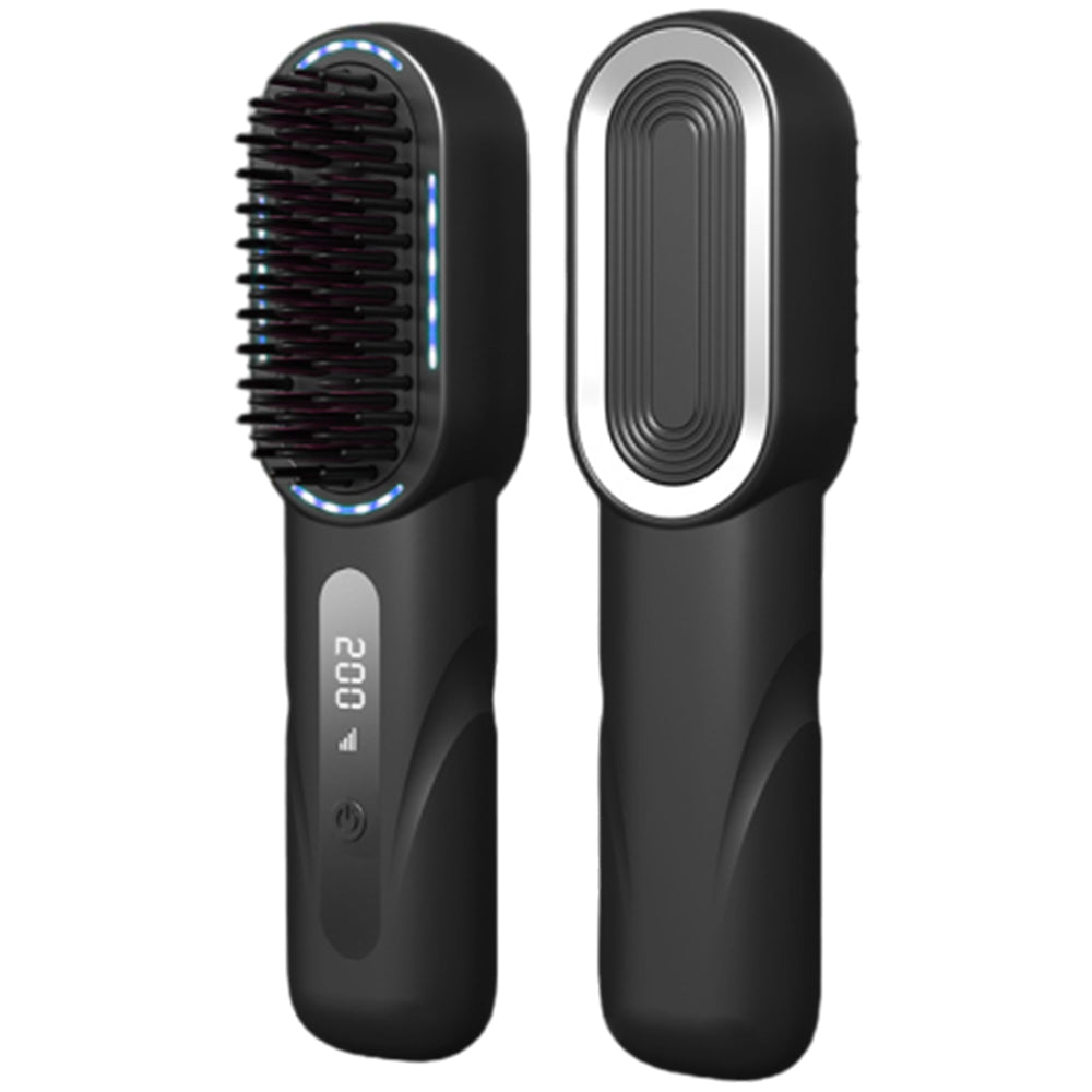 Cordless Hair Straightener Brush Portable Heated Straightening Comb Black