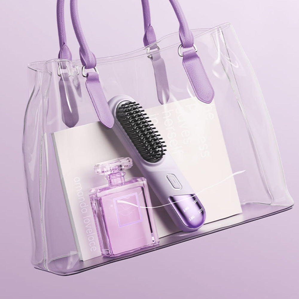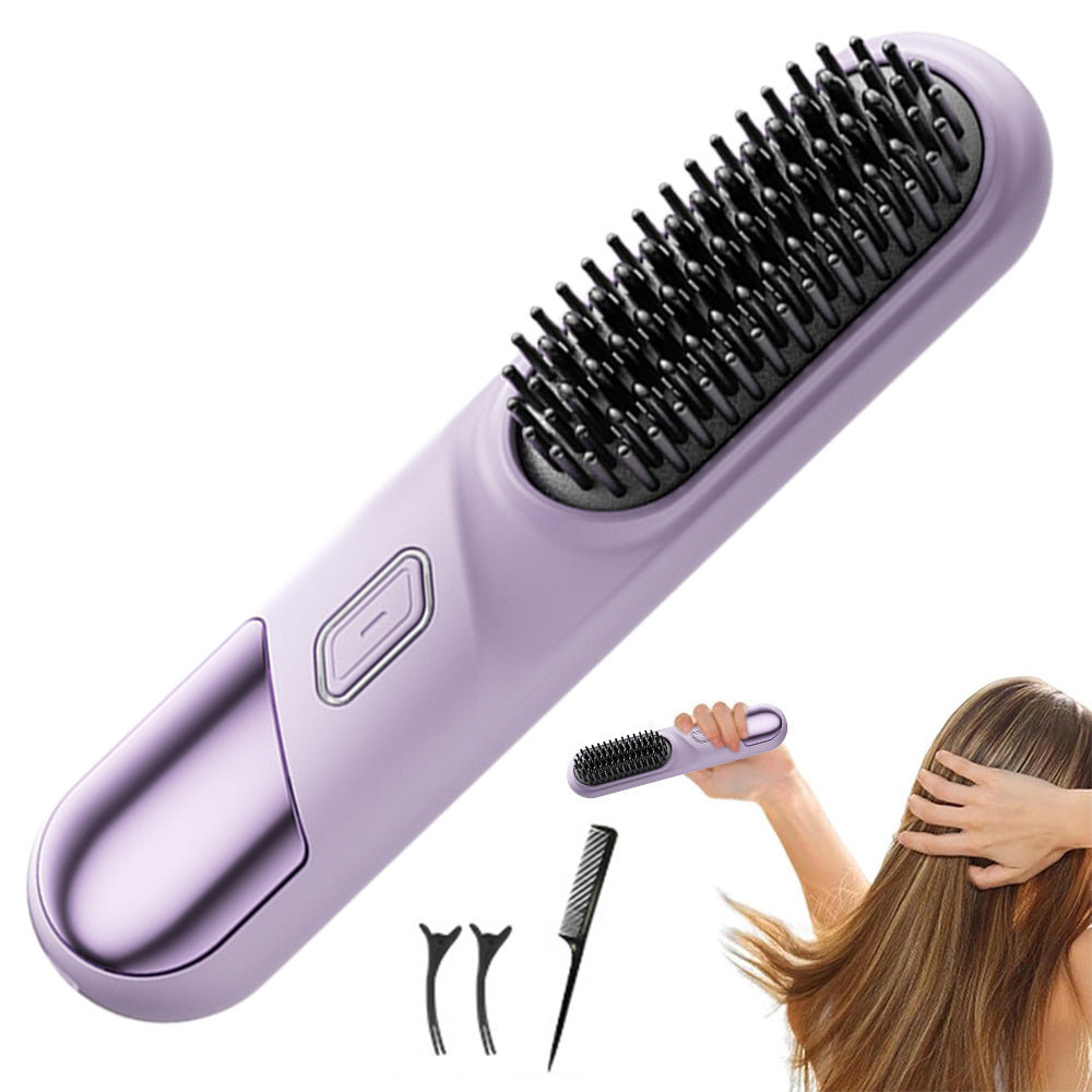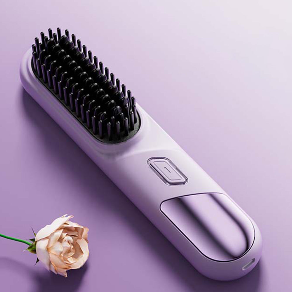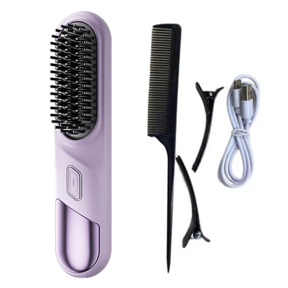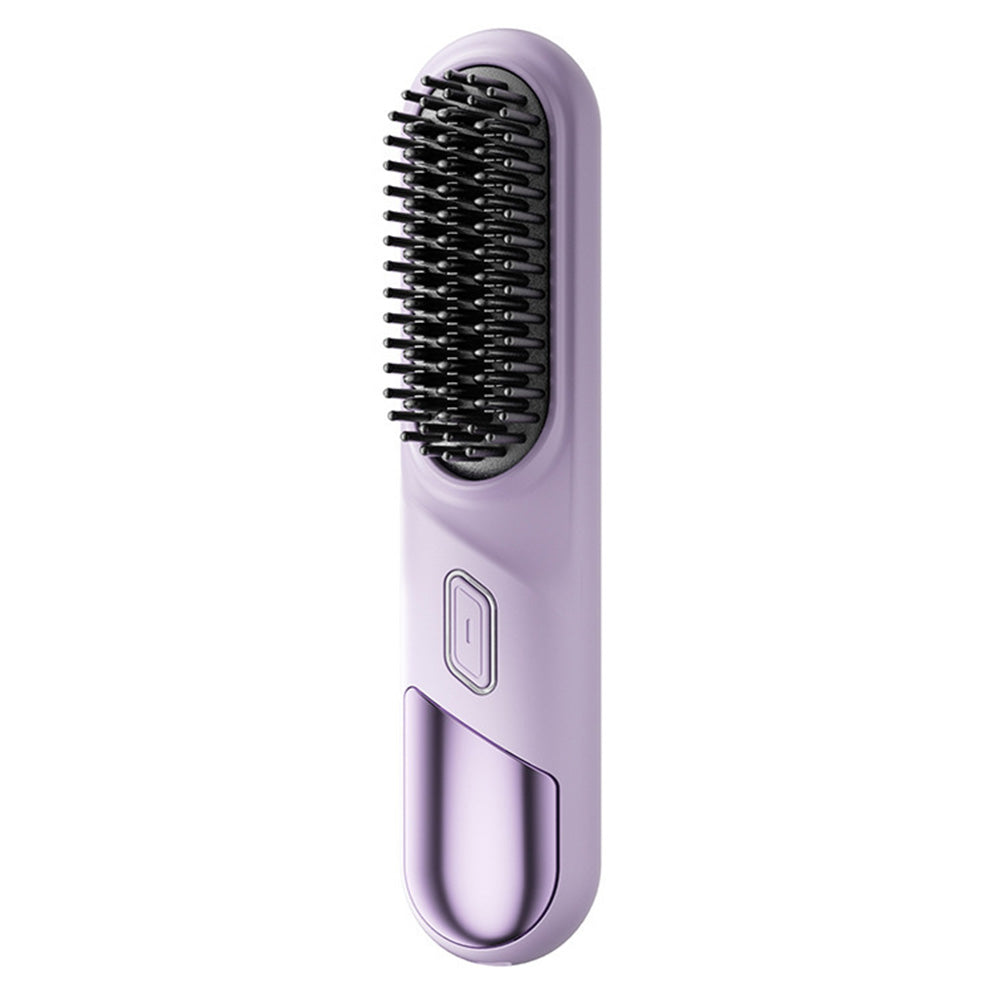 Cordless Hair Straightener Brush Portable Heating Hair Straightening Comb Purple