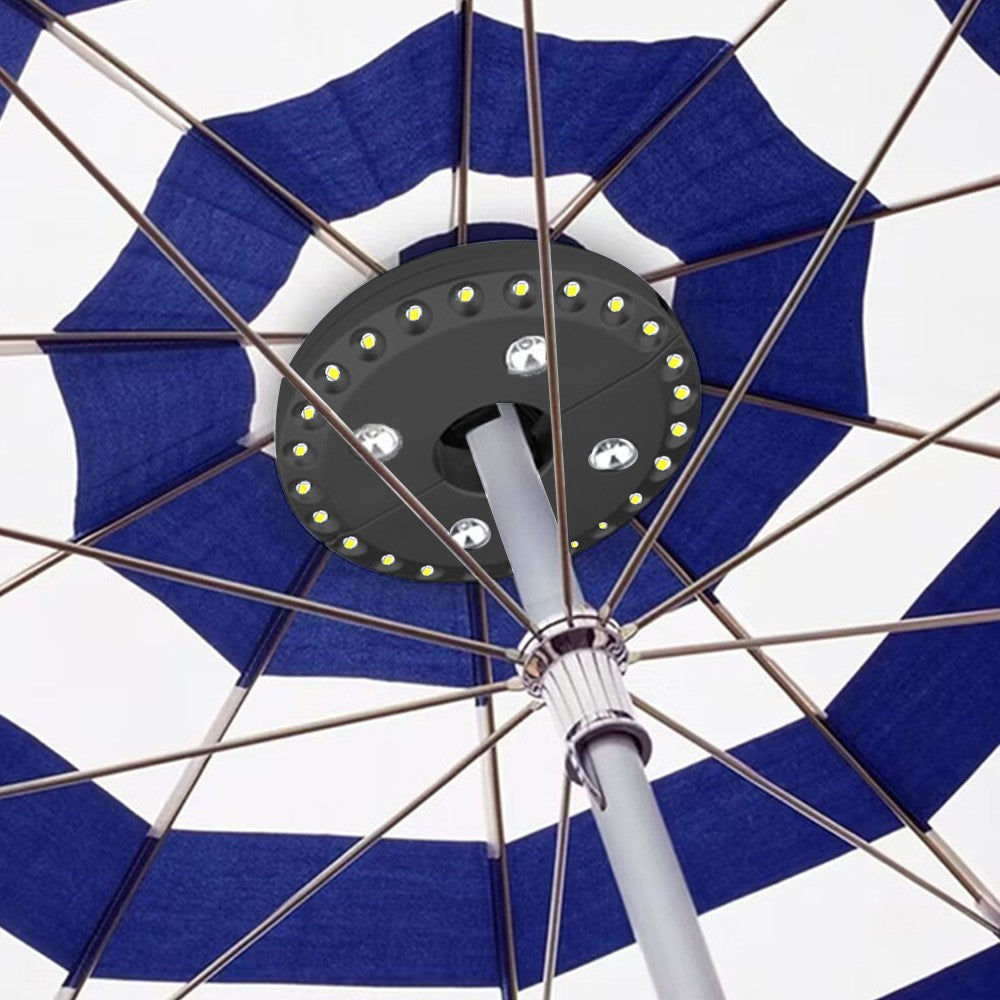 Outdoor umbrella light designed with 28 energy-saving LED bulbs is energy saving and environmental friendly.