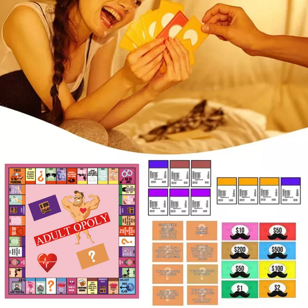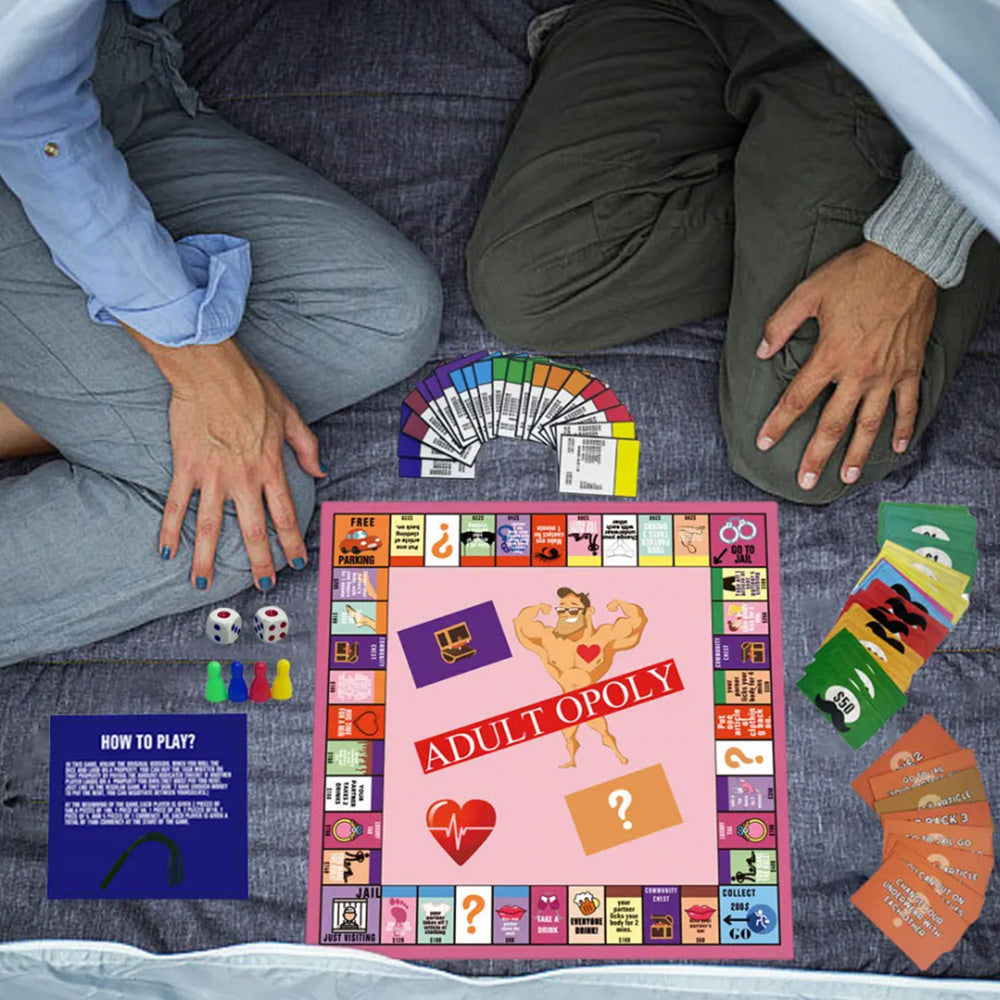 - In this couple adult opoly board game one, you purchase the task where the dice lands. When you buy a task, your partner must complete it.