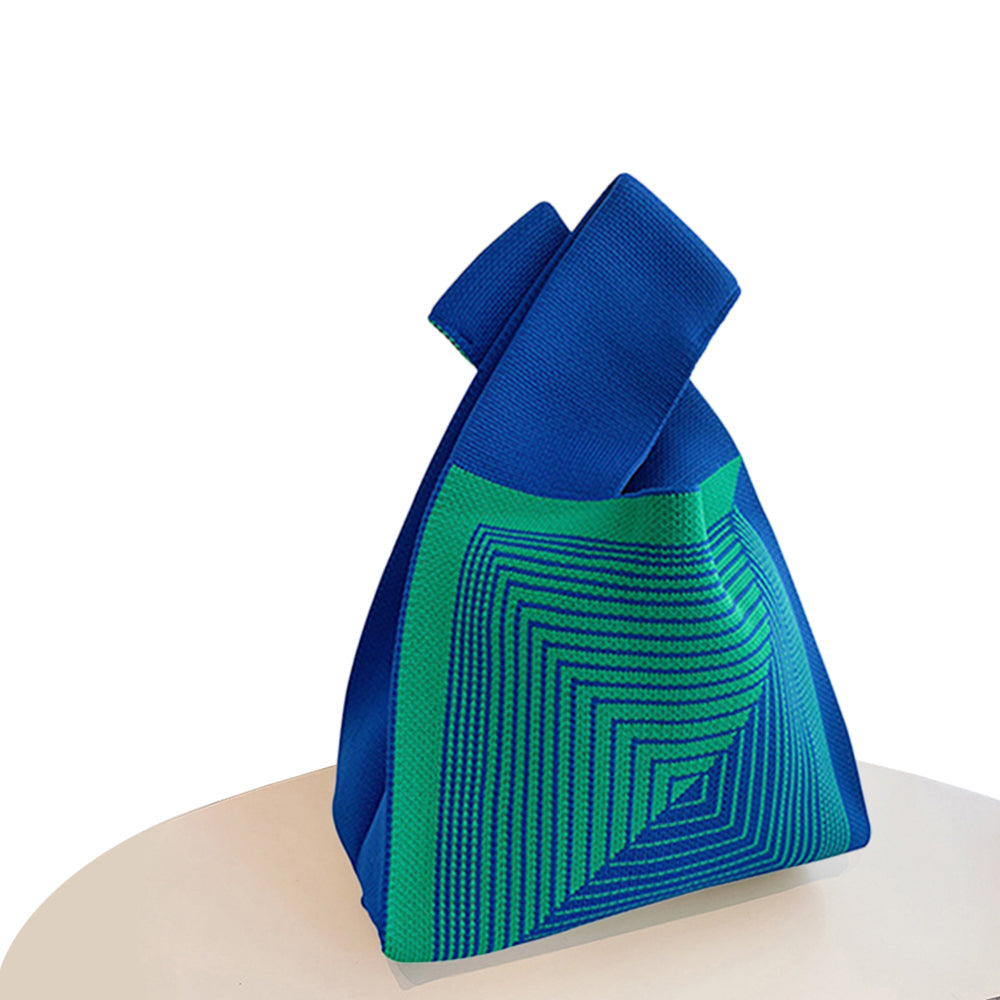 Hooking Tote Bag Small Cute Knot Wristlet Knitted Bag Knitted Wrist Purse Blue Line