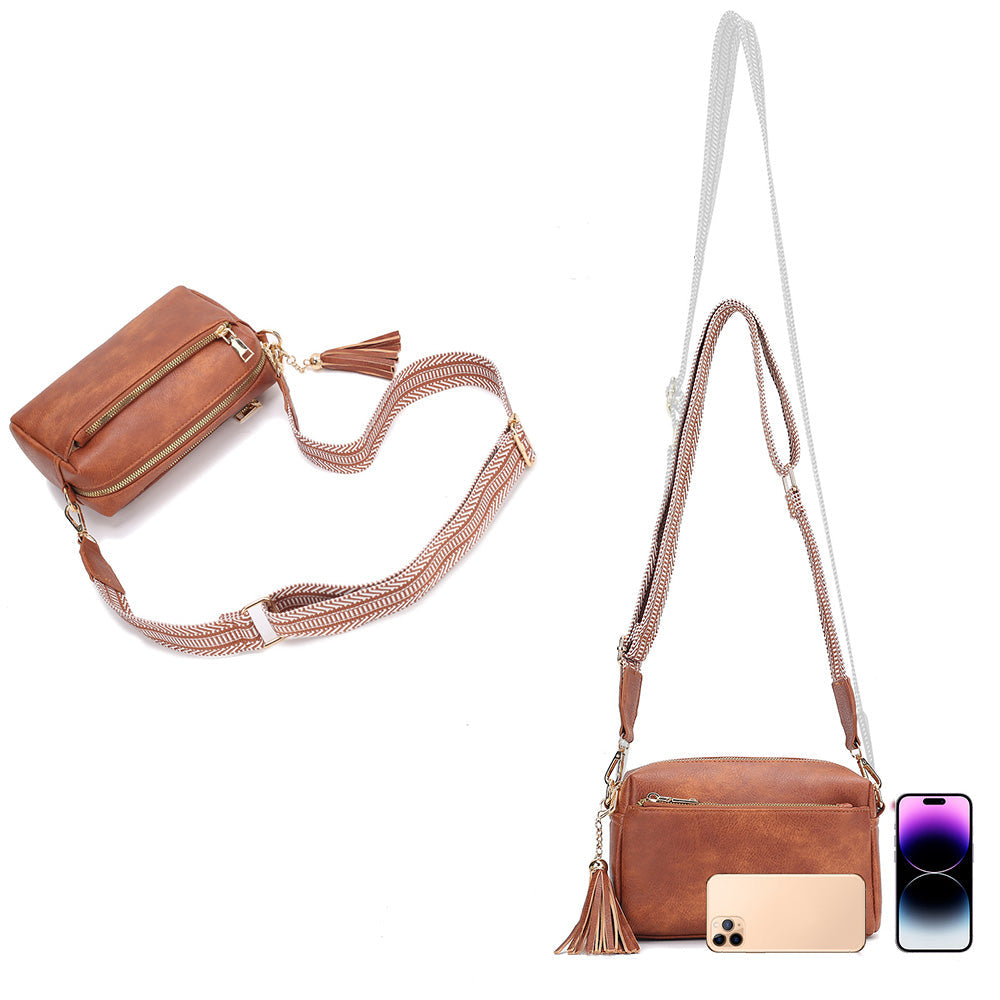 Crossbody Purse for Women Zipper Cell Phone Handbag with Adjustable Guitar Strap Brown