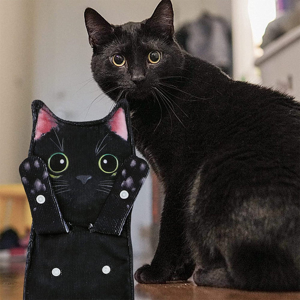 Cute Cat Quick-Dry Hanging Hand Towels Decorative for Bathroom Kitchen-Black