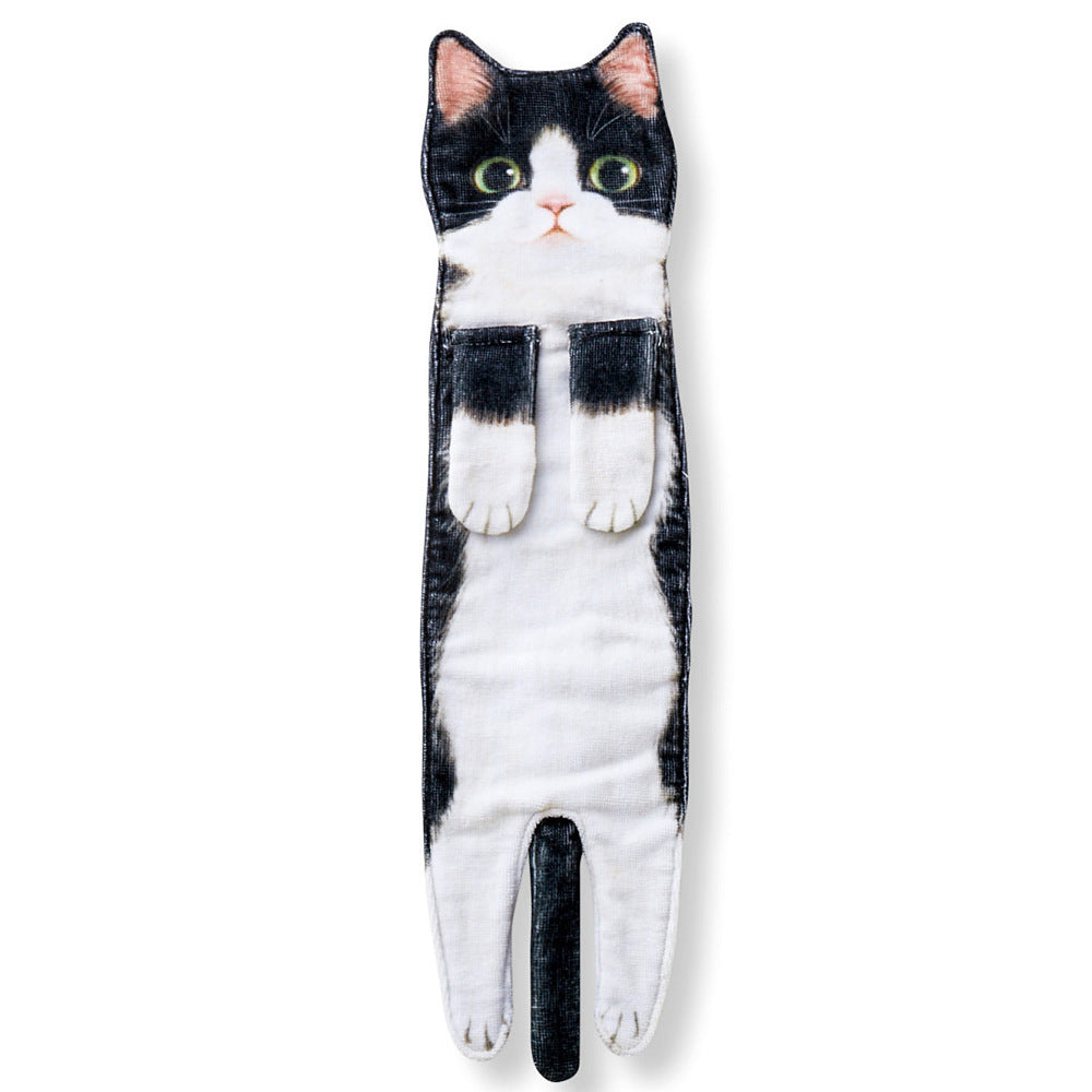 Cute Cat Quick-Dry Hanging Hand Towels Decorative for Bathroom Kitchen-Black white