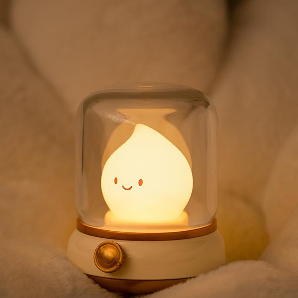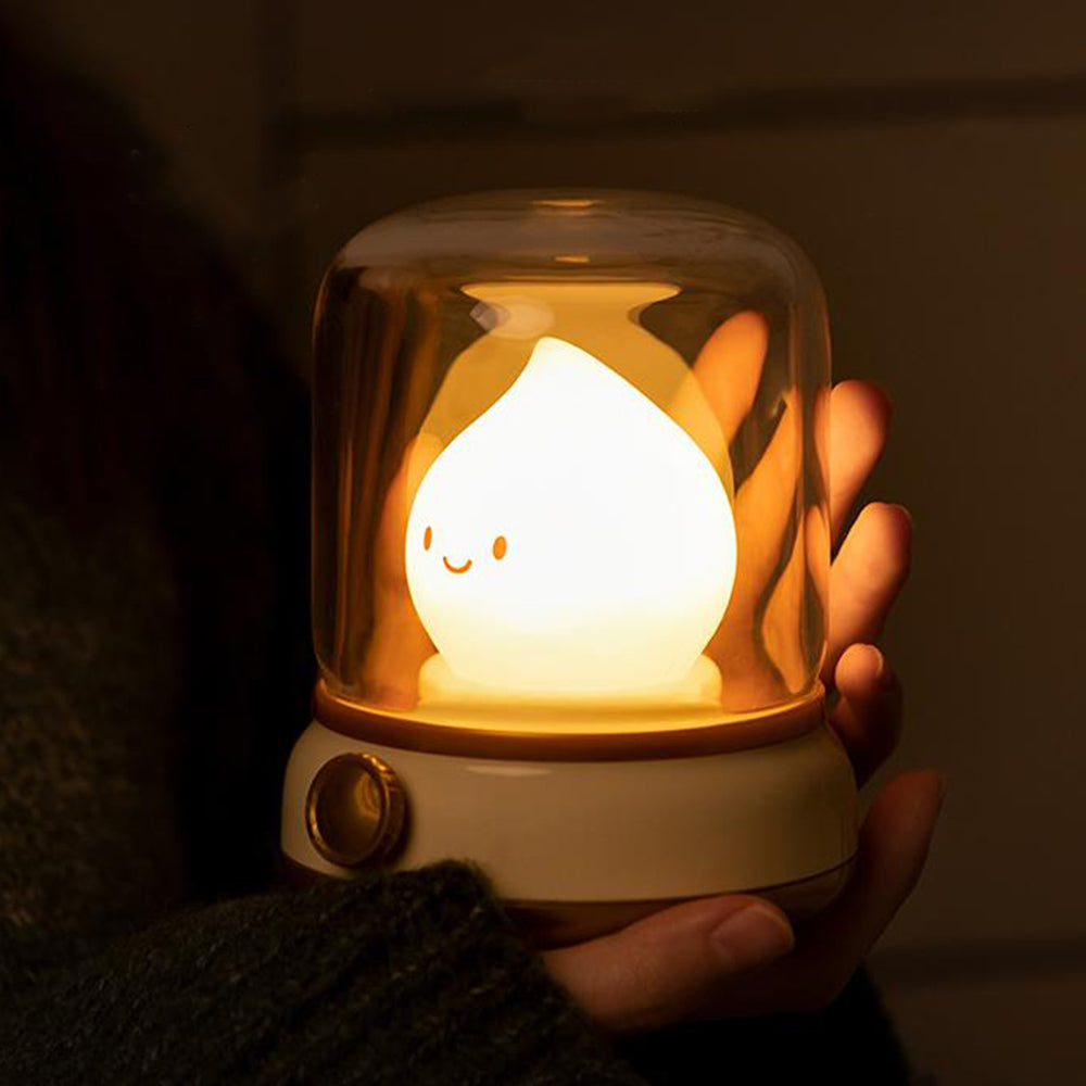 Cute Kerosene Lamp Silicone Campfire Night Light Desktop LED Decorative Light Yellow