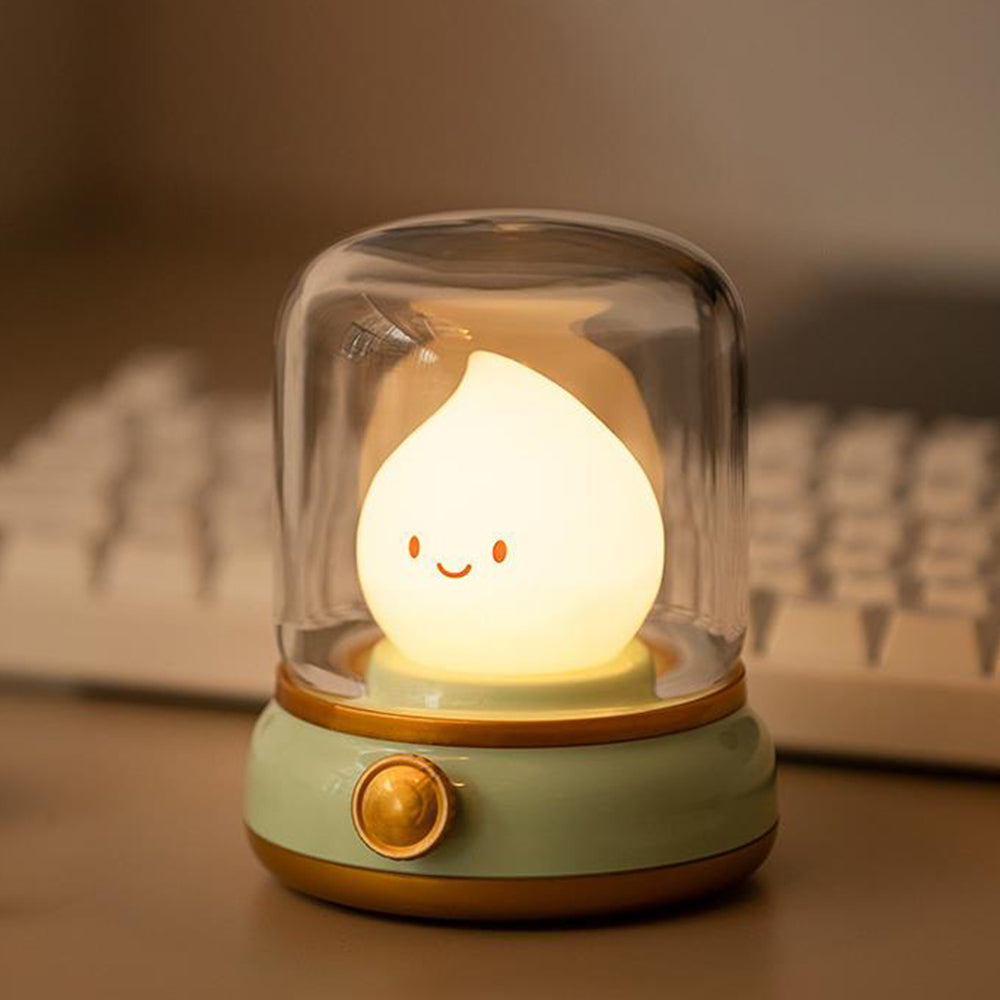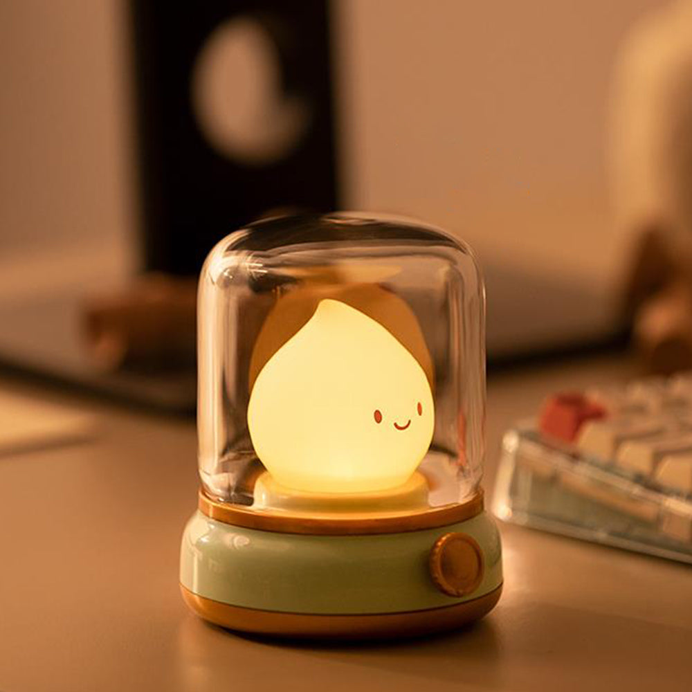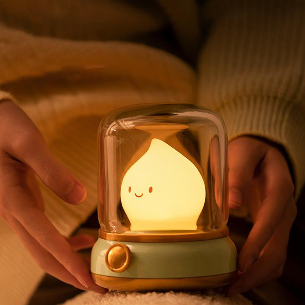 Cute Kerosene Lamp Silicone Campfire Night Light Desktop LED Decorative Light Green
