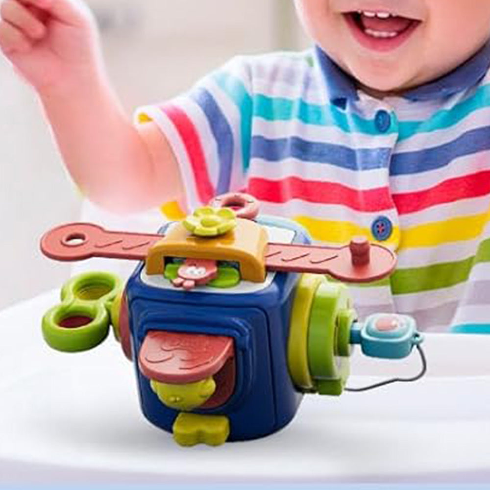 - Designed for easy to grasp, this toy helps kids develop hand-eye coordination and fine motor skills through a series of movements including pressing, pulling, inserting and rotating.