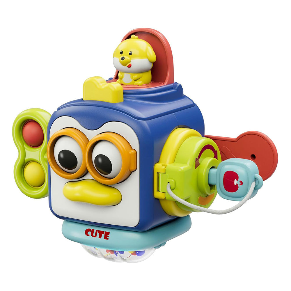 The cute penguin activity cube is a Montessori educational toy designed to engage kids with interactive features that promote sensory development and fine motor skills.