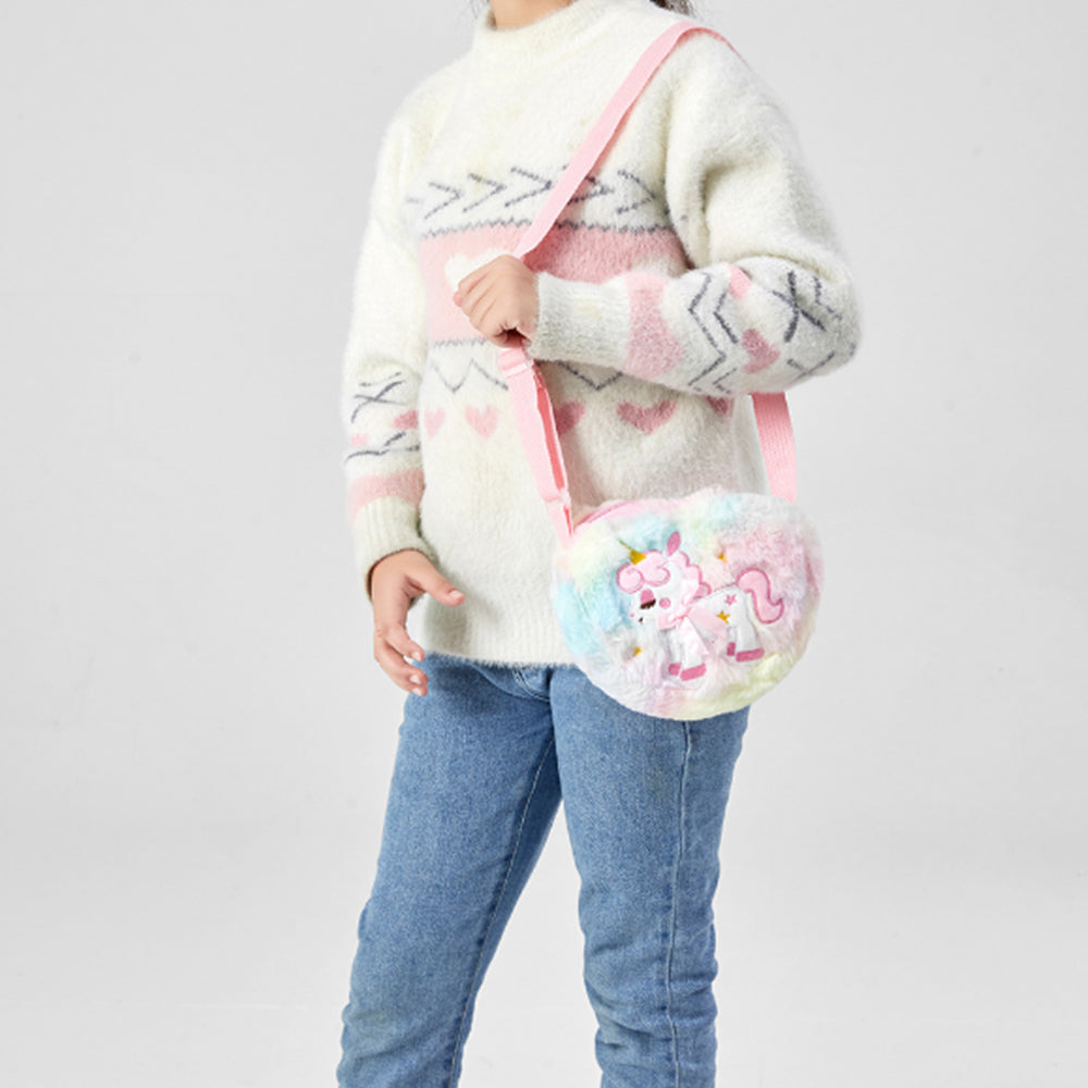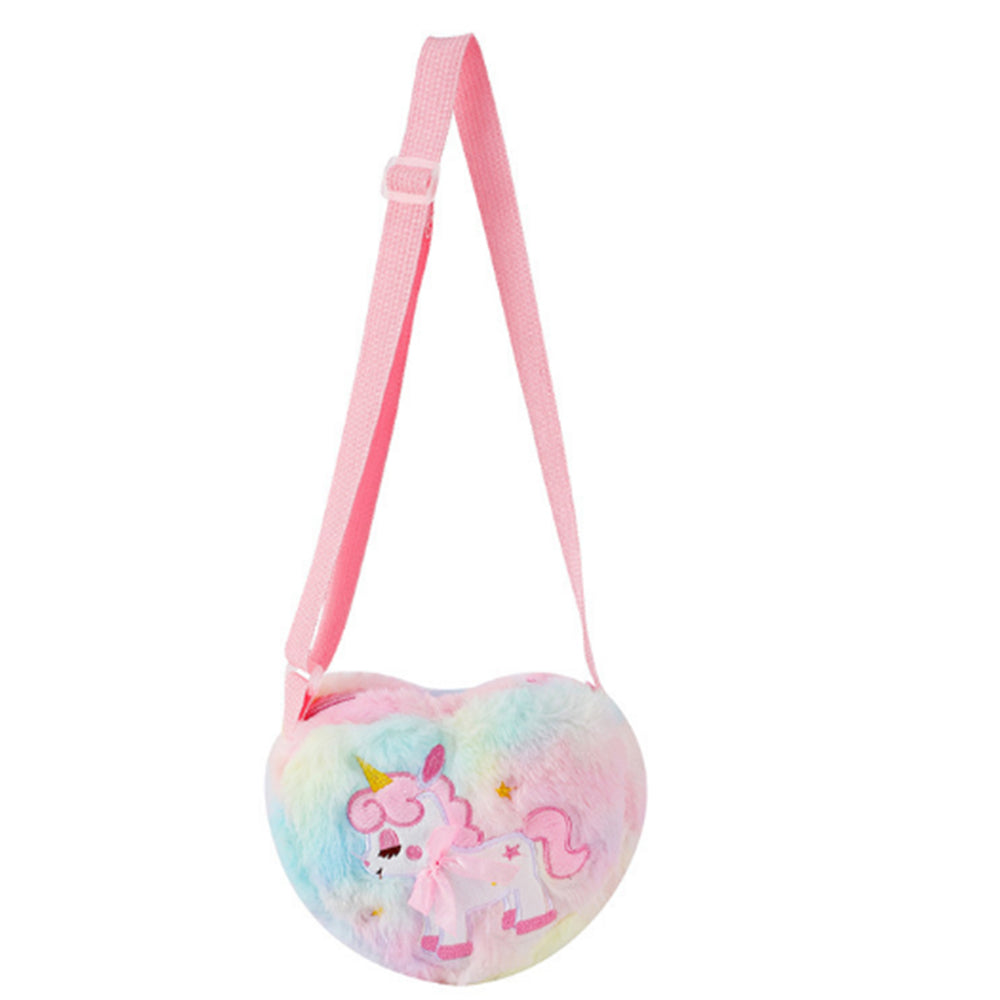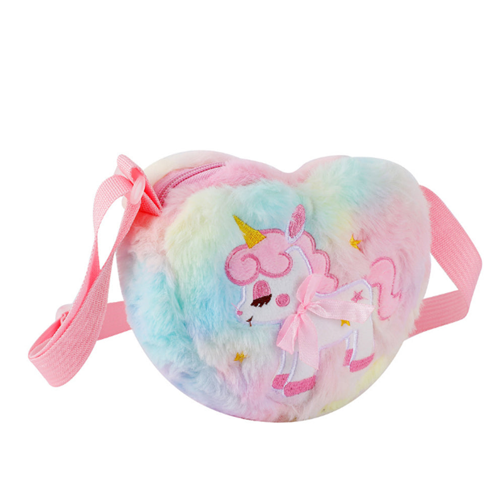 Cute Plush Unicorn Crossbody Bag Heart Shape Zipper Shoulder Bag for Girls Mixed Color
