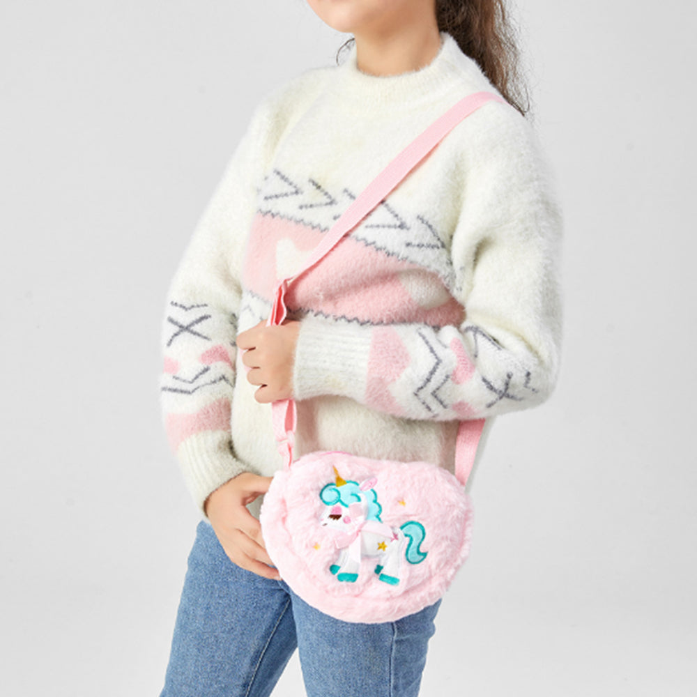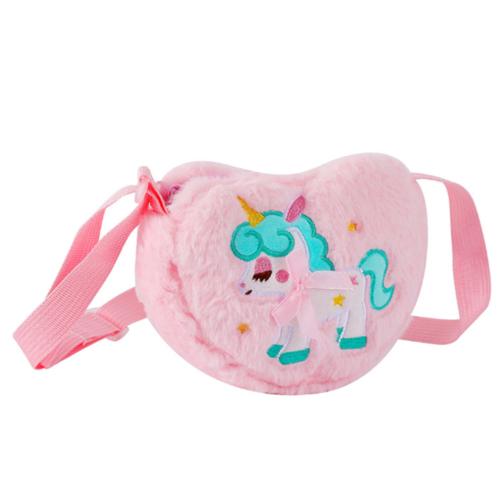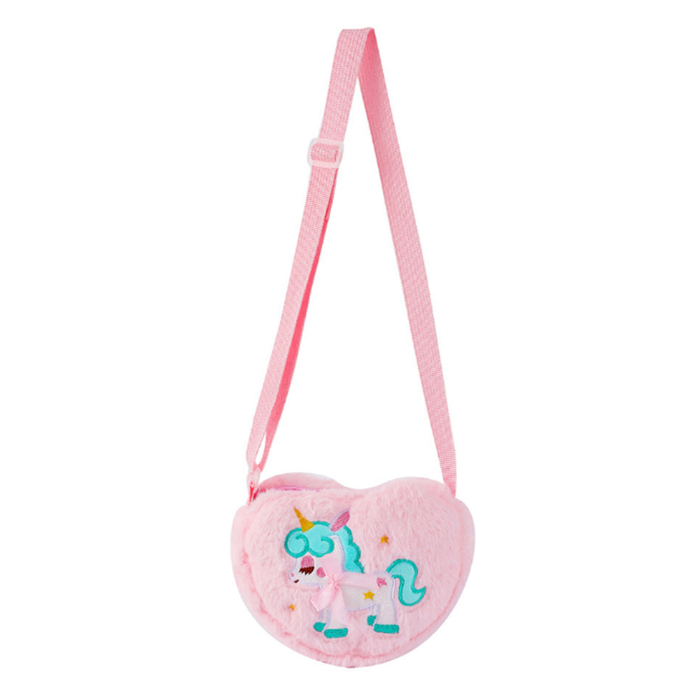 Cute Plush Unicorn Crossbody Bag Heart Shape Zipper Shoulder Bag for Girls Pink