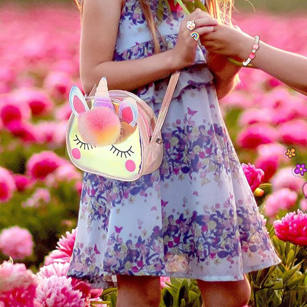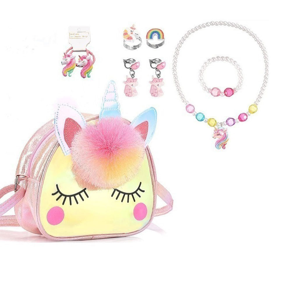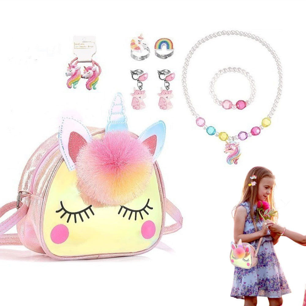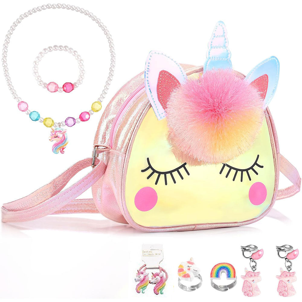 Cute Unicorn Sling Bag Set for Girls Rainbow Crossbody Bag Dress Up Accessories Style 1