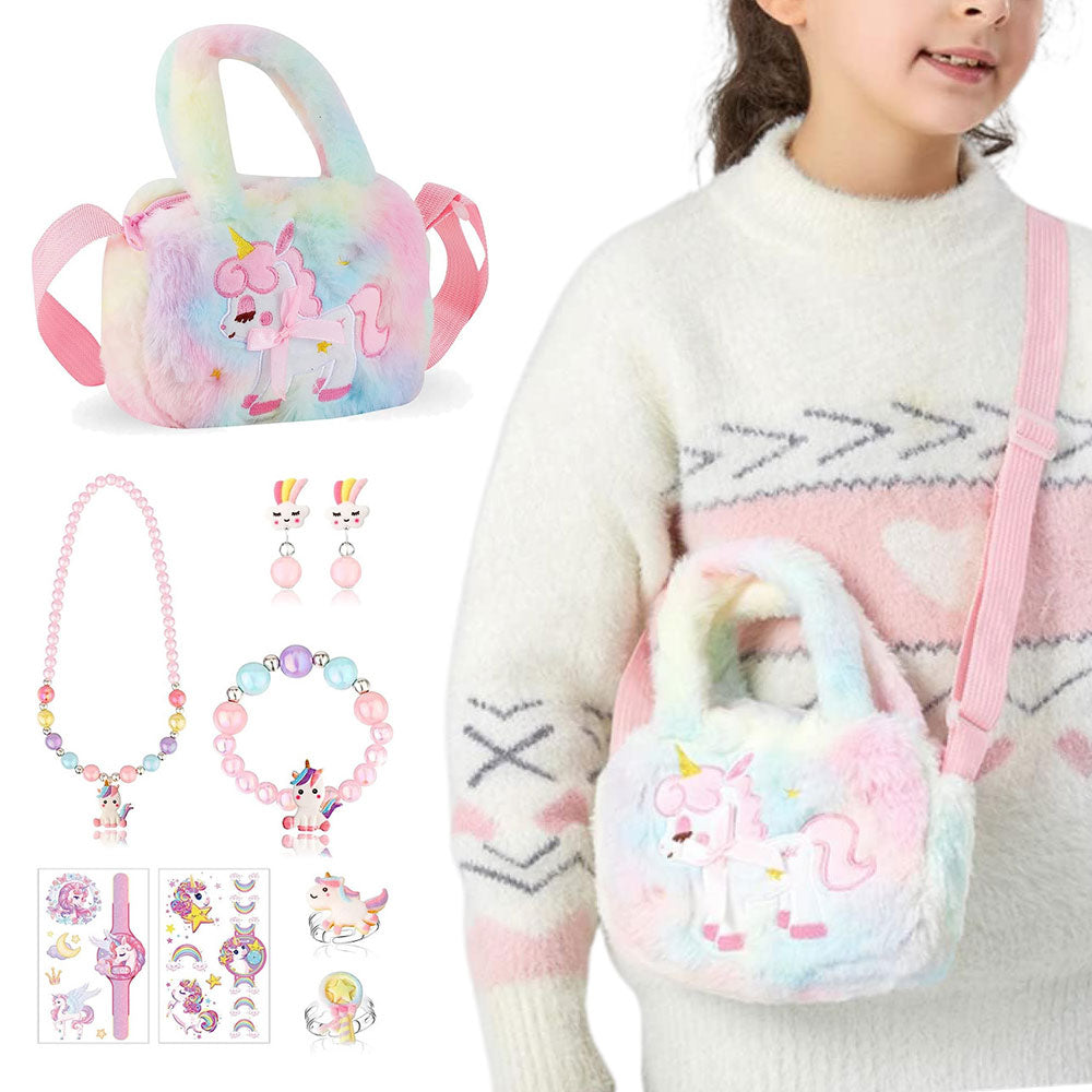 Cute Unicorn Sling Bag Set for Girls Rainbow Crossbody Bag Dress Up Accessories Style 2