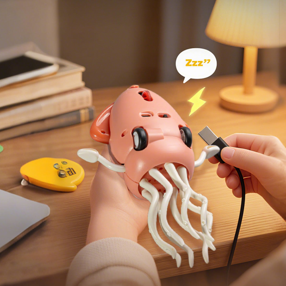 - Built-in intelligent sensors detect obstacles and automatically change direction, allowing the octopus to move smoothly around furniture and walls. Its unpredictable movements captivate children's attention and encourage interactive play.