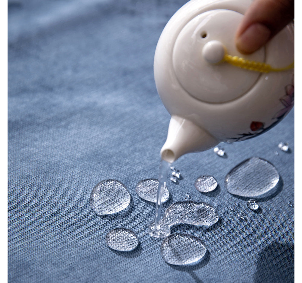 Features nano water resistant layer, just wipe the liquids drops on the furniture cover by a duster cloth or tissue immediately when the liquids inadvertently spilled on the slipcover, then your sofa will not get wet.