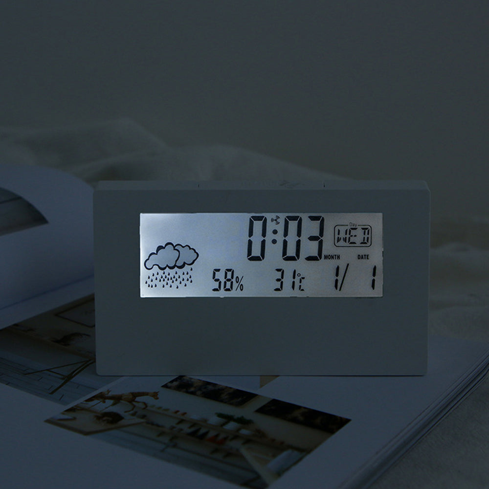 Digital Alarm Clock Multifunctional Desk Clock Temperature Humidity Date Weather Display Office Home Decor Glow in the Dark Style