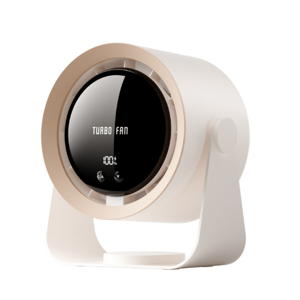 The desk fan is a quiet, portable air circulator with a sleek digital display, designed to provide efficient cooling for your workspace or home without disturbing your peace.