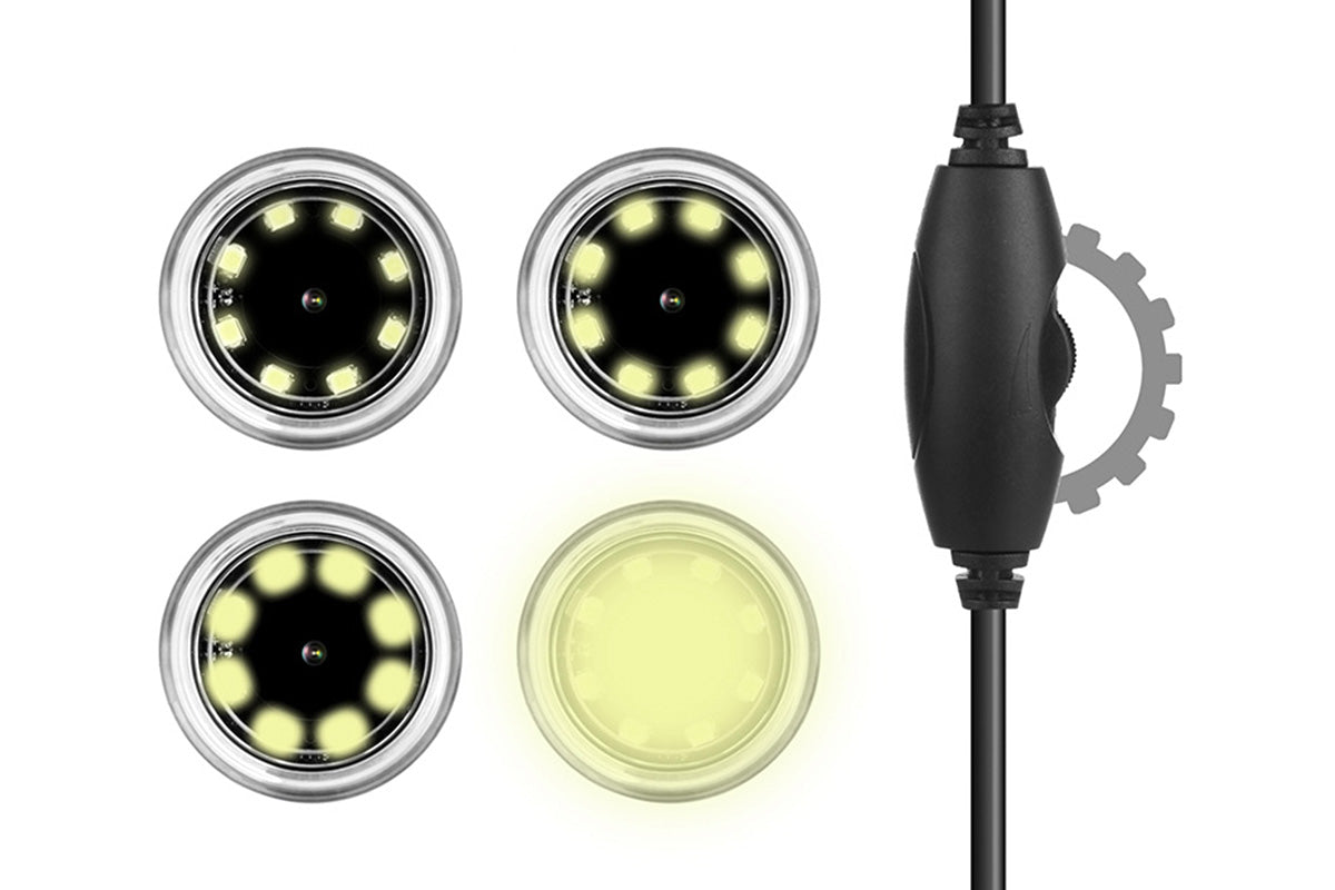 - Includes 8 LED lights with adjustable brightness to suit different lighting conditions plus smart touch control for one tap photo capture of high clarity images.