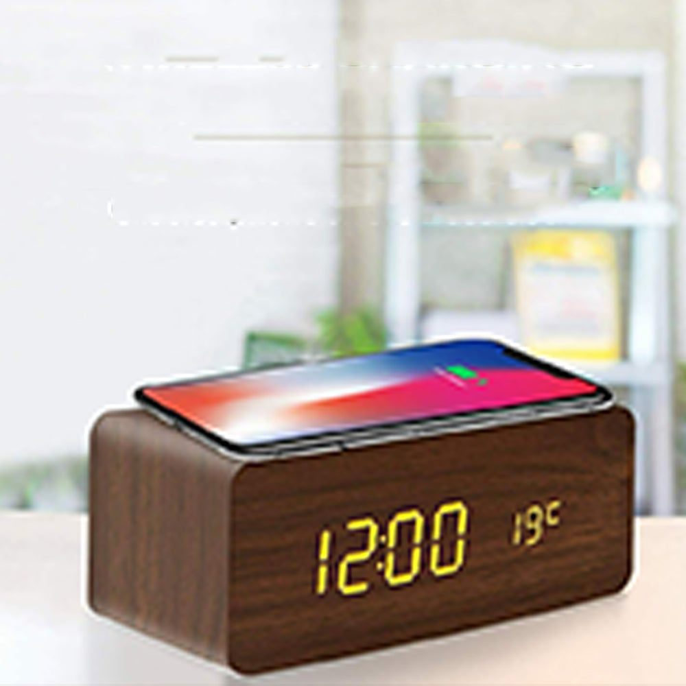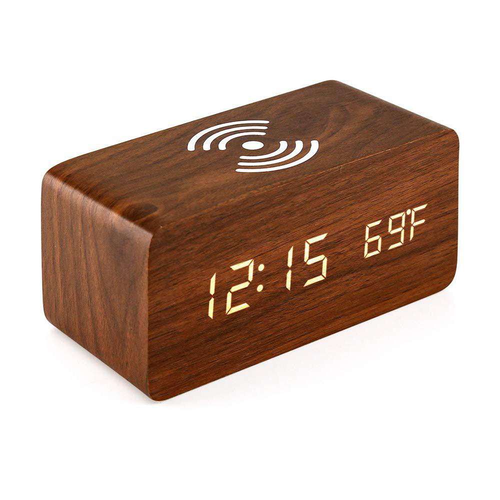Dimmable Digital Alarm Clock with Wireless Charger Station for Home Office Brown