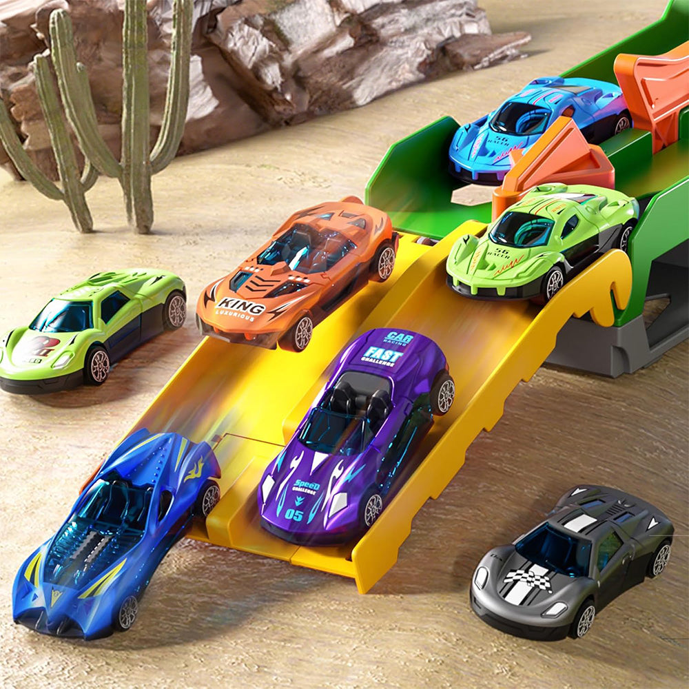 - This transport trucks car toys sets including 12pcs alloy cars (random style) for makes for great push-around play on its own, while also serving as storage space for small cars.