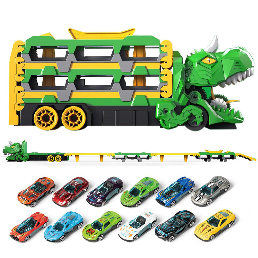 Dinosaur Transport Truck Toy Set with 12PCS Cars for Boys ââ‚?Car & Truck Set Green