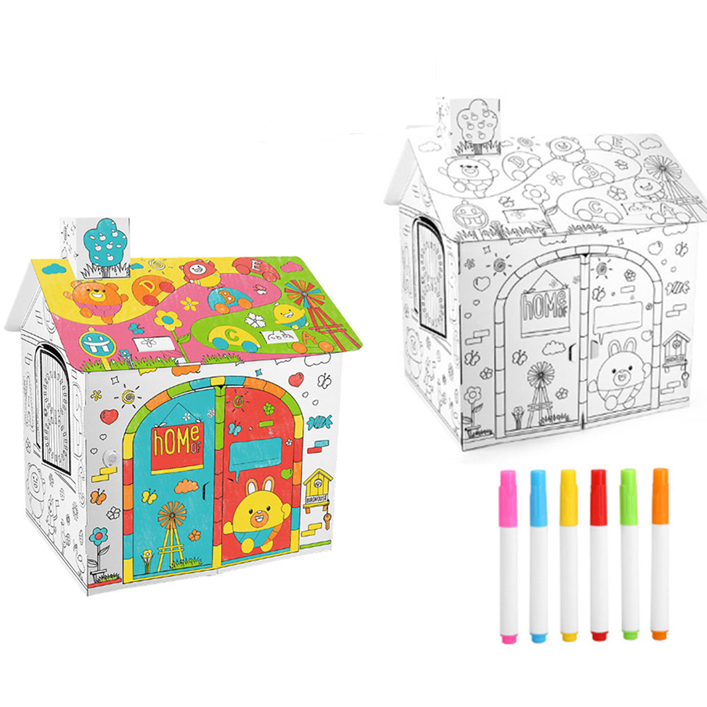 - Children are free to decorate this cardboard house with 6 colorful pens and unleash their imaginations.