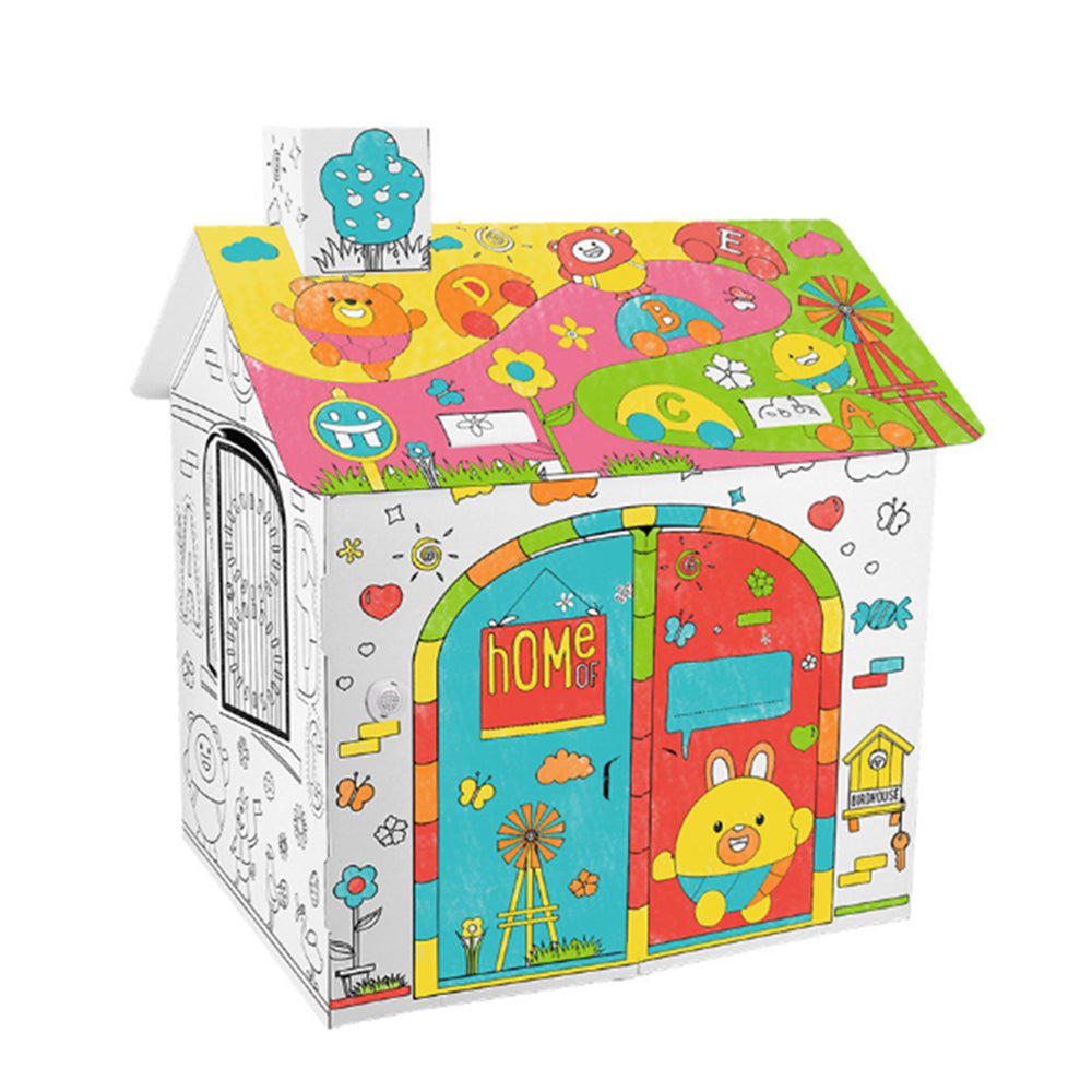 This children's coloring cardboard house provides children with a creative, interactive and safe coloring experience.