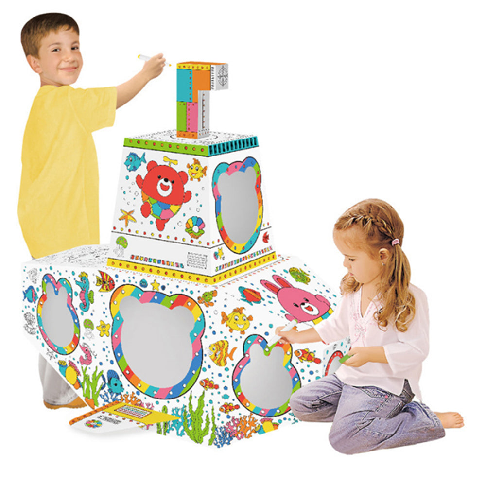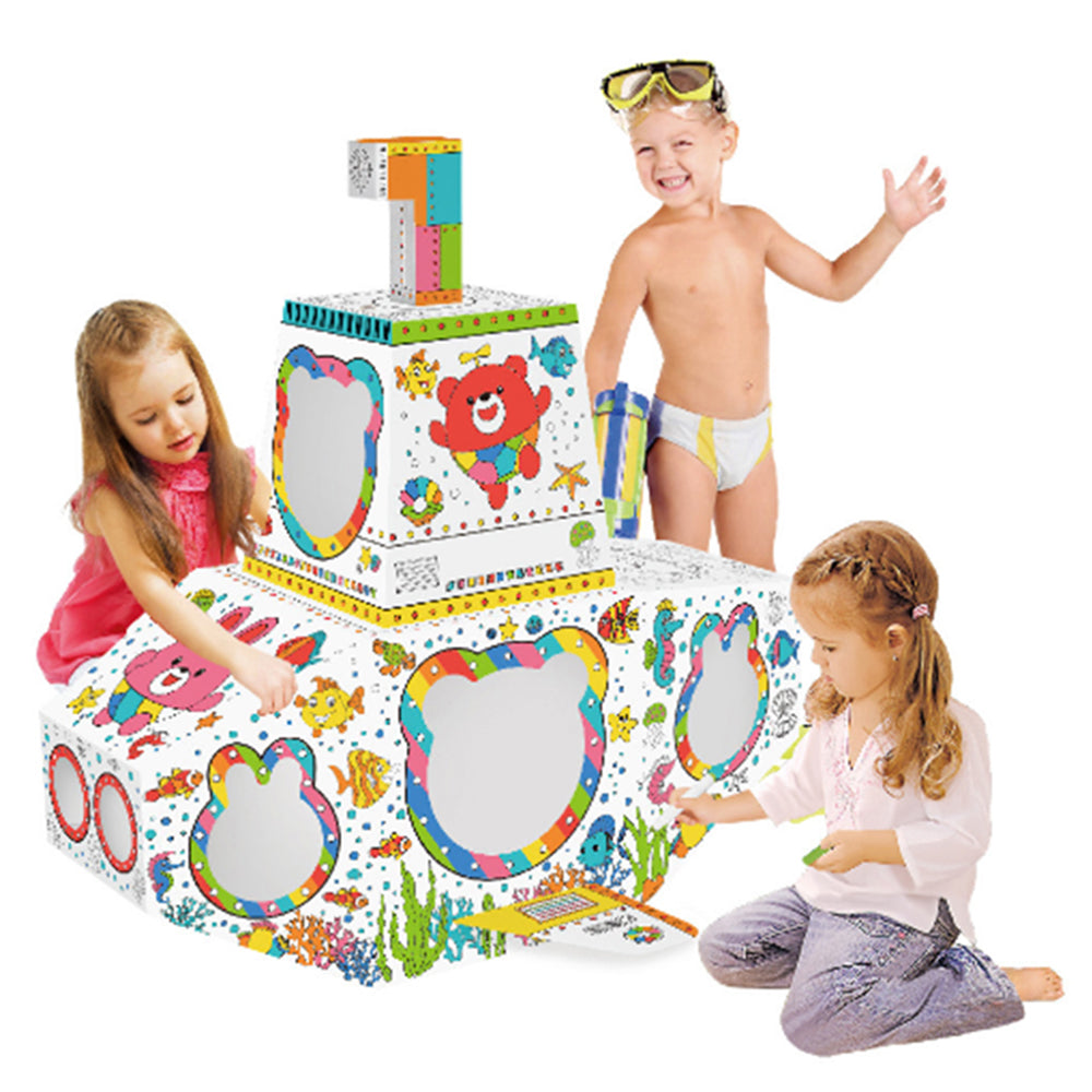 This children's coloring cardboard house provides children with a creative, interactive and safe coloring experience.