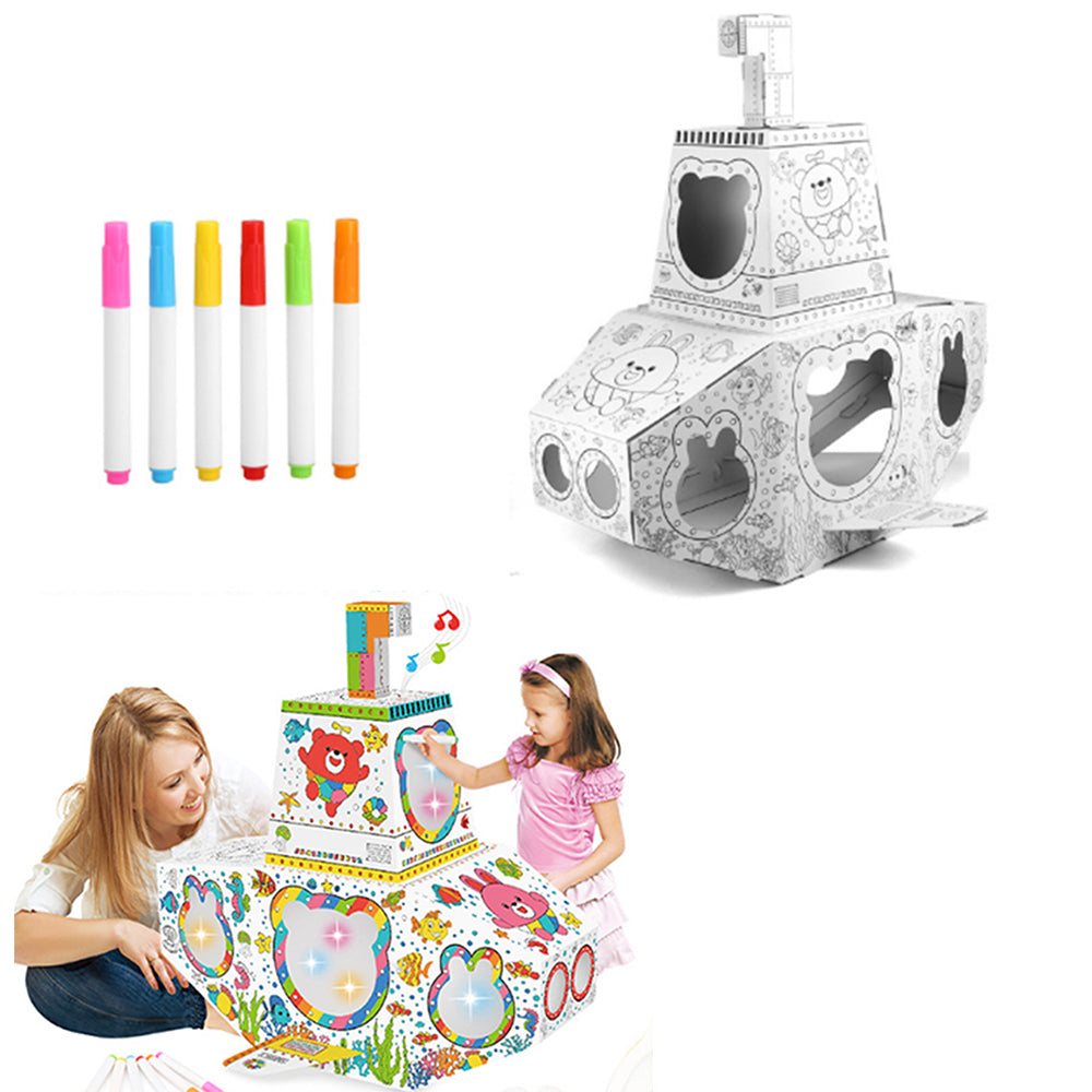 - Children are free to decorate this cardboard house with 6 colorful pens and unleash their imaginations.