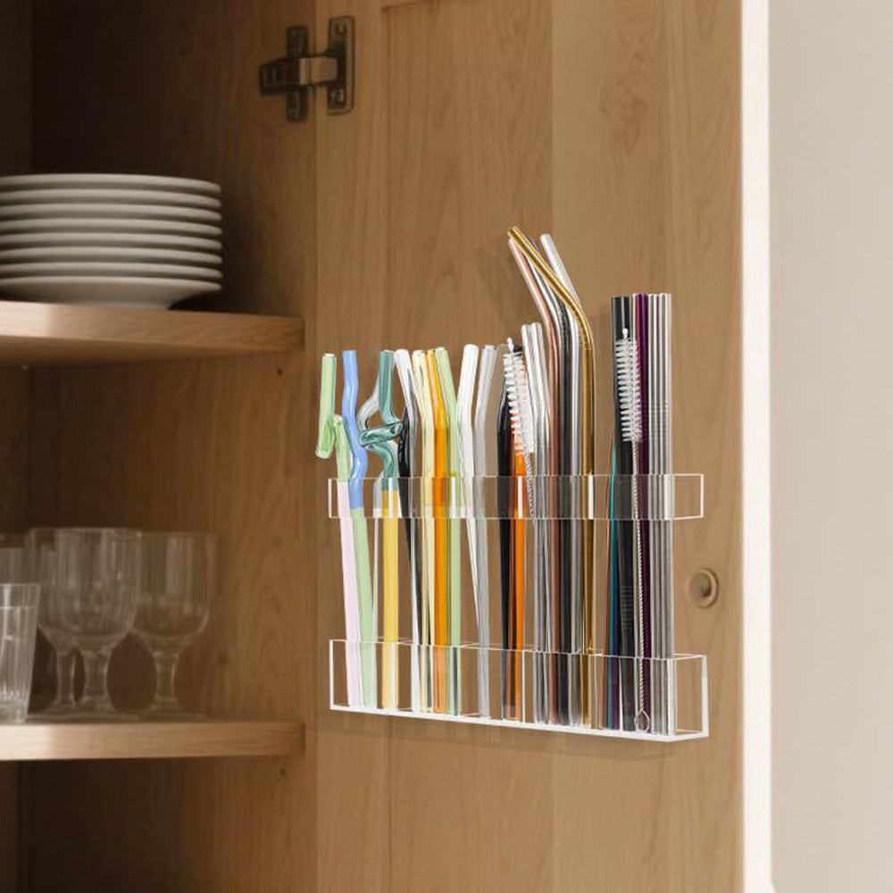 Keep your reusable straws and kitchen tools neatly organized with this transparent acrylic holder—easy to install, stylish to store.