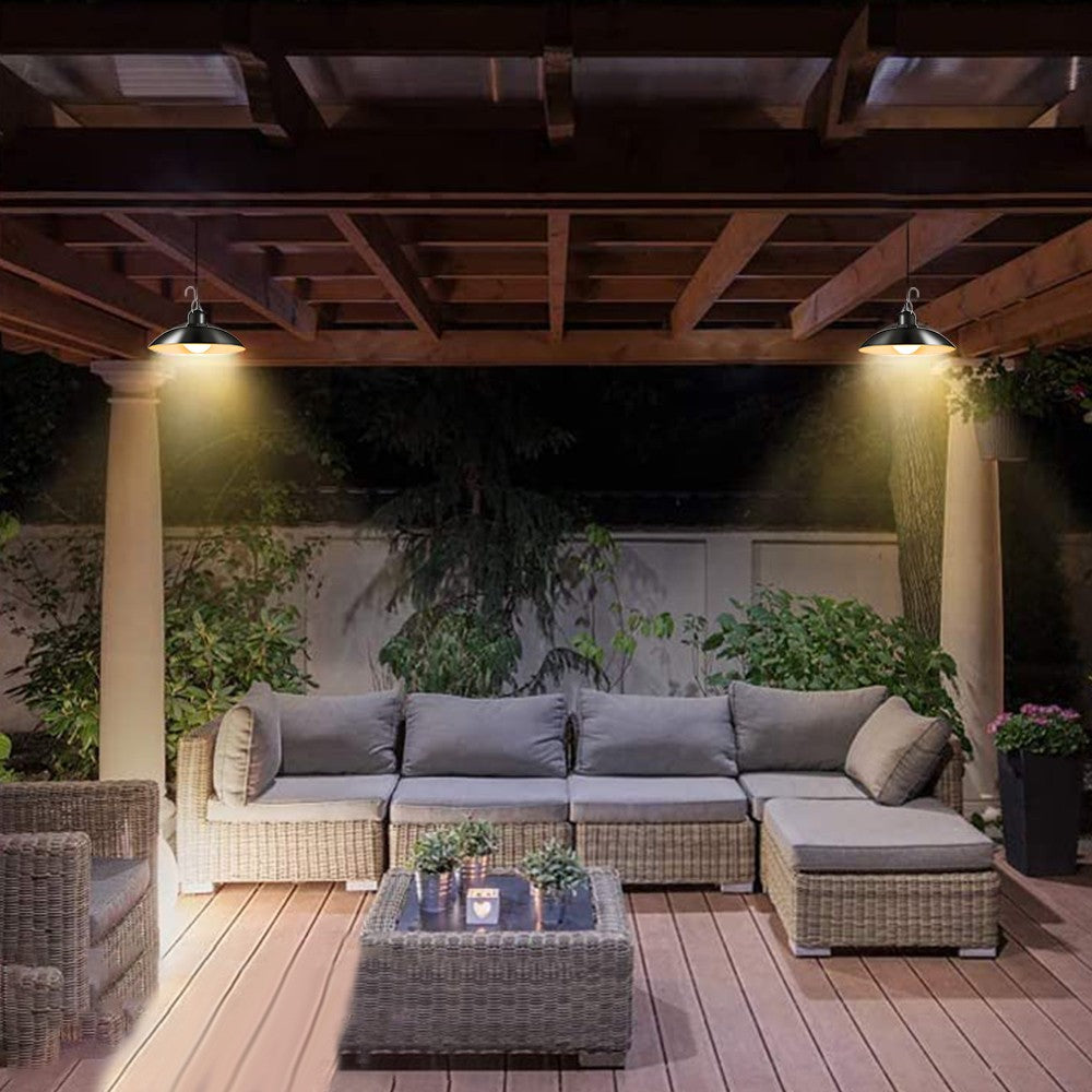 Featuring a classic design with a black retro shade, a solar-powered pendant light is a good choice both your indoor and outdoor in all weather conditions like rain, wind, snow, frost.