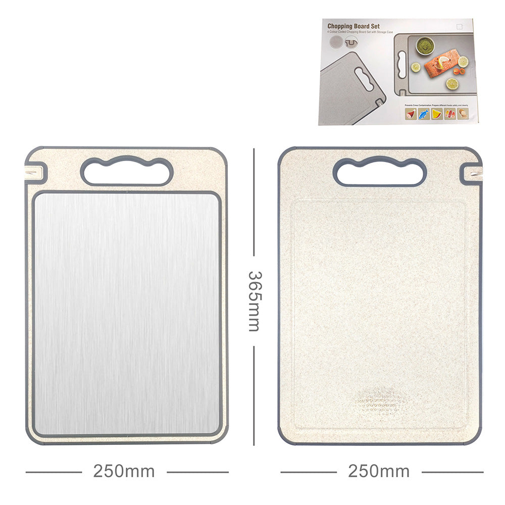 The cutting board is a versatile 2 in 1 kitchen tool, with one side made of 304 stainless steel for cutting raw and cooked meat, and the other side made of wheat straw TPR material for cutting vegetables and fruit, it can avoid cross, healthy and odorless.